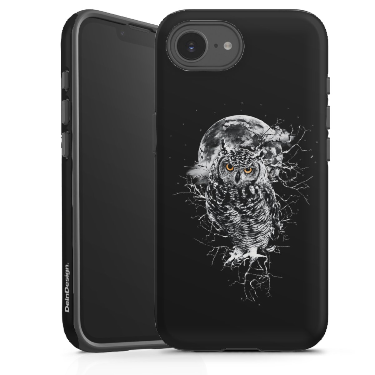 Bei dieser Handyhülle nutzen wird den besonders langlebigen Sublimationsdruck. Dieses raffinierte Druckverfahren sticht durch sein hochwertiges, gestochen scharfes Druckbild in brillanten Farben hervor. Der Druckbereich umfasst die ganze Hartschale inklusive der Ecken und Kanten, lediglich der Silikon-Einleger bleibt einfarbig schwarz. Wähle für Dein Design entweder eines unserer exklusiven Shop-Motive, oder werde kreativ und gestalte Dein Wunschdesign zum Beispiel mit Fotos und Overlays selbst.