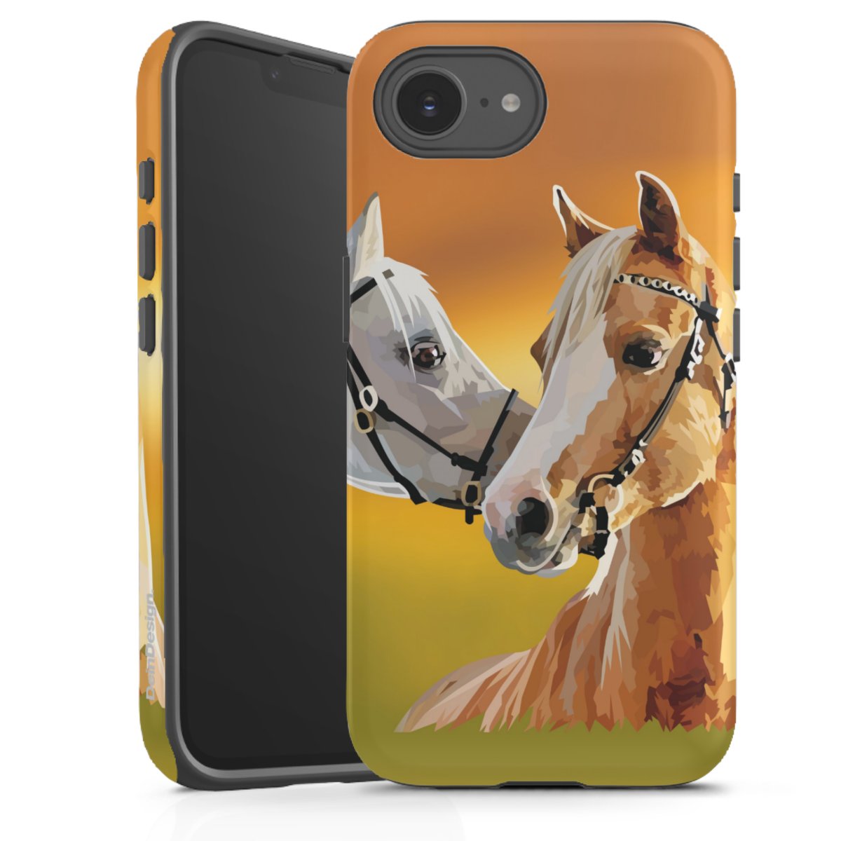 Bei dieser Handyhülle nutzen wird den besonders langlebigen Sublimationsdruck. Dieses raffinierte Druckverfahren sticht durch sein hochwertiges, gestochen scharfes Druckbild in brillanten Farben hervor. Der Druckbereich umfasst die ganze Hartschale inklusive der Ecken und Kanten, lediglich der Silikon-Einleger bleibt einfarbig schwarz. Wähle für Dein Design entweder eines unserer exklusiven Shop-Motive, oder werde kreativ und gestalte Dein Wunschdesign zum Beispiel mit Fotos und Overlays selbst.