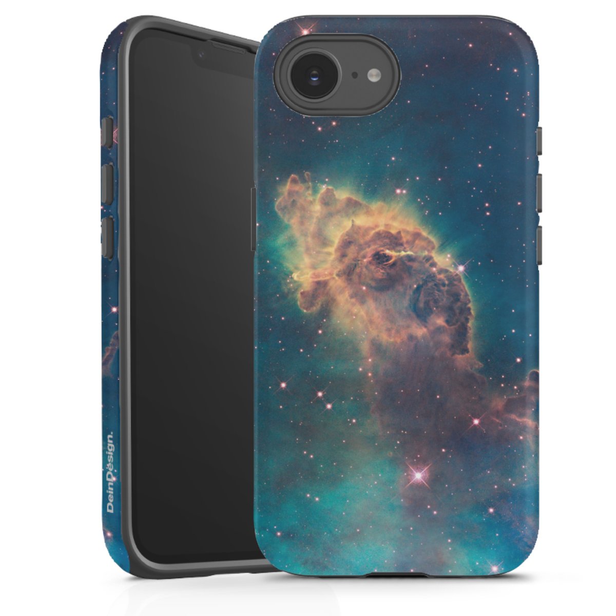 Bei dieser Handyhülle nutzen wird den besonders langlebigen Sublimationsdruck. Dieses raffinierte Druckverfahren sticht durch sein hochwertiges, gestochen scharfes Druckbild in brillanten Farben hervor. Der Druckbereich umfasst die ganze Hartschale inklusive der Ecken und Kanten, lediglich der Silikon-Einleger bleibt einfarbig schwarz. Wähle für Dein Design entweder eines unserer exklusiven Shop-Motive, oder werde kreativ und gestalte Dein Wunschdesign zum Beispiel mit Fotos und Overlays selbst.