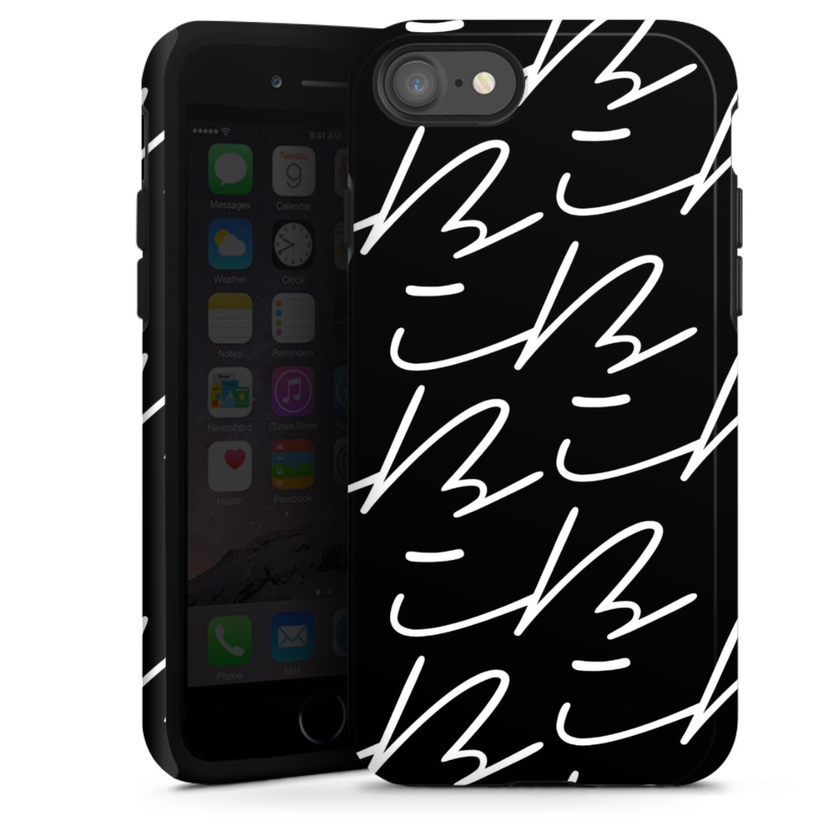 Bei dieser Handyhülle nutzen wird den besonders langlebigen Sublimationsdruck. Dieses raffinierte Druckverfahren sticht durch sein hochwertiges, gestochen scharfes Druckbild in brillanten Farben hervor. Der Druckbereich umfasst die ganze Hartschale inklusive der Ecken und Kanten, lediglich der Silikon-Einleger bleibt einfarbig schwarz. Wähle für Dein Design entweder eines unserer exklusiven Shop-Motive, oder werde kreativ und gestalte Dein Wunschdesign zum Beispiel mit Fotos und Overlays selbst.