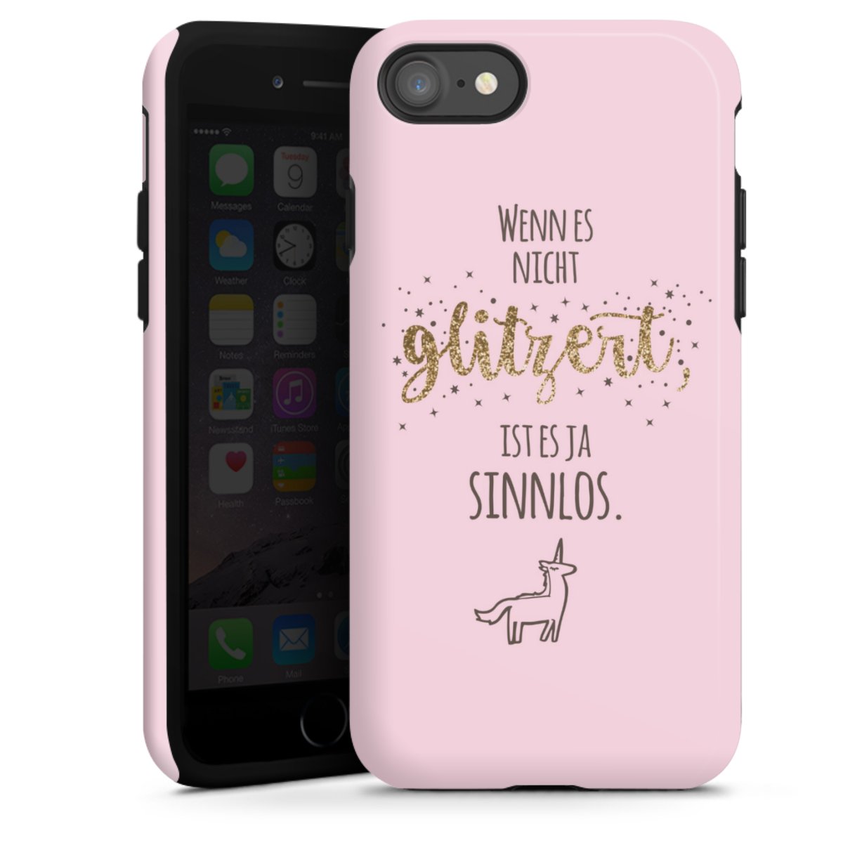 Bringe zuerst den Silikonkern an Dein Handy an, sodass alle Ecken umschlossen sind. Setze nun die Hartschale auf den Silikon-Einleger. Pflege-Tipp: Tough Cases lassen sich mit einem feuchten Tuch und mildem Reinigungsmittel säubern. Die glänzende Variante kannst du hin und wieder mit Glasreiniger einsprühen und mit einem Mikrofasertuch trocken polieren, damit sie so schön bleibt wie am Anfang.