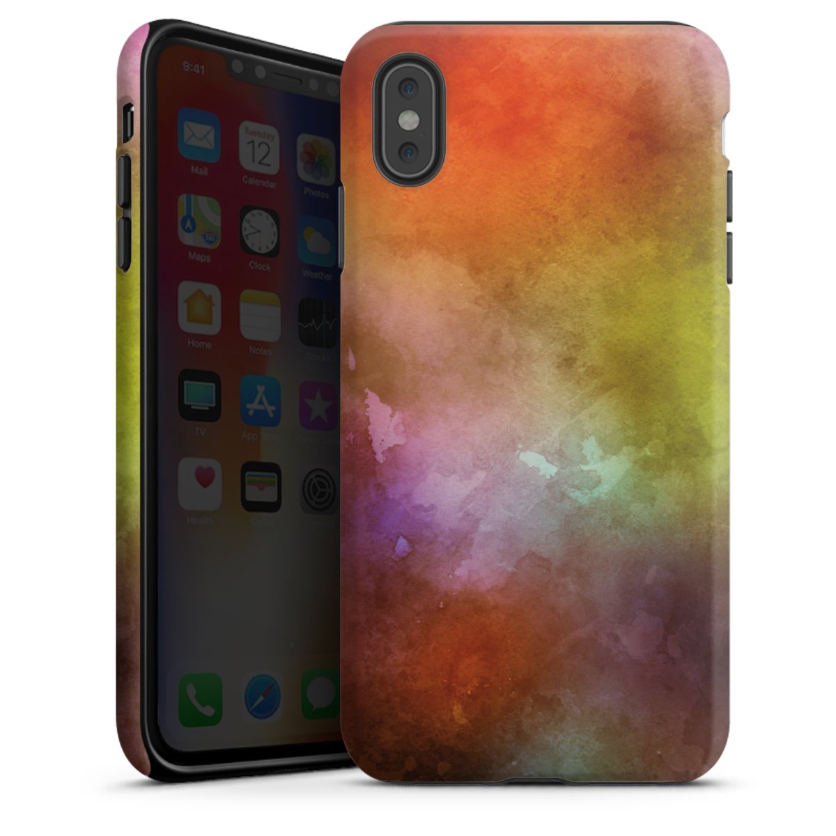 Bei dieser Handyhülle nutzen wird den besonders langlebigen Sublimationsdruck. Dieses raffinierte Druckverfahren sticht durch sein hochwertiges, gestochen scharfes Druckbild in brillanten Farben hervor. Der Druckbereich umfasst die ganze Hartschale inklusive der Ecken und Kanten, lediglich der Silikon-Einleger bleibt einfarbig schwarz. Wähle für Dein Design entweder eines unserer exklusiven Shop-Motive, oder werde kreativ und gestalte Dein Wunschdesign zum Beispiel mit Fotos und Overlays selbst.