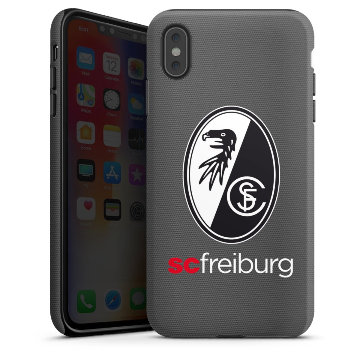 Bei DeinDesign kannst Du Dir eine individuelle SC-Freiburg-Handyhülle aussuchen, auf der das stilvolle schwarz-weiße Logo mit dem Greifenkopf zu sehen ist. Durch eine solche Hülle erhält Dein Smartphone ein unverkennbar individuelles Design. Der SC-Freiburg-Shop bietet lizensierte Fanartikel für alle Fans der Breisgau-Brasilianer.