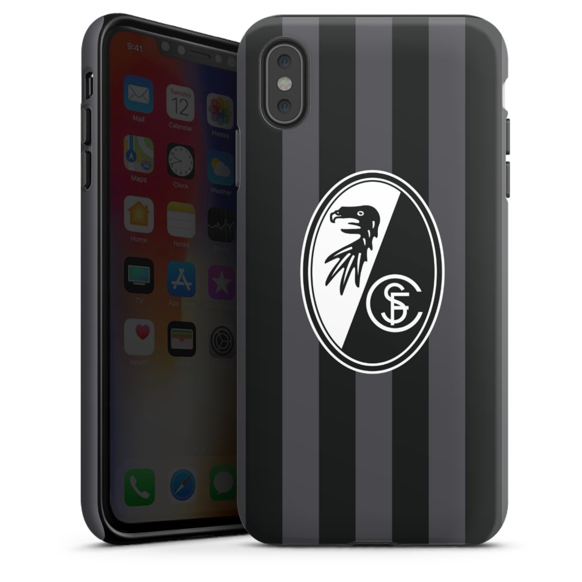 Bei DeinDesign kannst Du Dir eine individuelle SC-Freiburg-Handyhülle aussuchen, auf der das stilvolle schwarz-weiße Logo mit dem Greifenkopf zu sehen ist. Durch eine solche Hülle erhält Dein Smartphone ein unverkennbar individuelles Design. Der SC-Freiburg-Shop bietet lizensierte Fanartikel für alle Fans der Breisgau-Brasilianer.