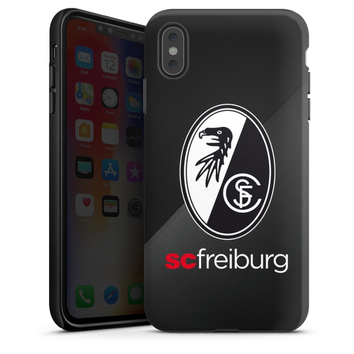 Bei DeinDesign kannst Du Dir eine individuelle SC-Freiburg-Handyhülle aussuchen, auf der das stilvolle schwarz-weiße Logo mit dem Greifenkopf zu sehen ist. Durch eine solche Hülle erhält Dein Smartphone ein unverkennbar individuelles Design. Der SC-Freiburg-Shop bietet lizensierte Fanartikel für alle Fans der Breisgau-Brasilianer.