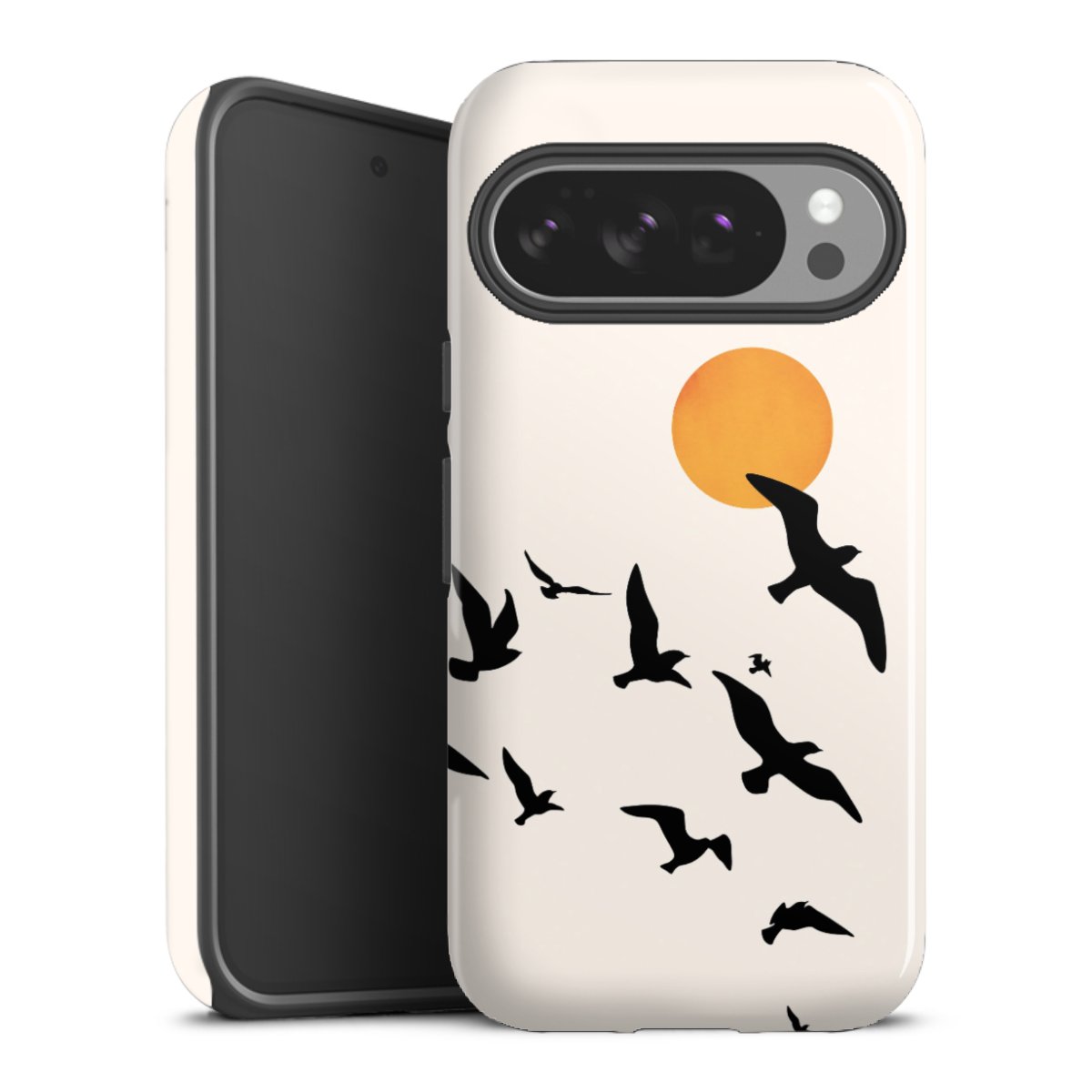 Bei dieser Handyhülle nutzen wird den besonders langlebigen Sublimationsdruck. Dieses raffinierte Druckverfahren sticht durch sein hochwertiges, gestochen scharfes Druckbild in brillanten Farben hervor. Der Druckbereich umfasst die ganze Hartschale inklusive der Ecken und Kanten, lediglich der Silikon-Einleger bleibt einfarbig schwarz. Wähle für Dein Design entweder eines unserer exklusiven Shop-Motive, oder werde kreativ und gestalte Dein Wunschdesign zum Beispiel mit Fotos und Overlays selbst.