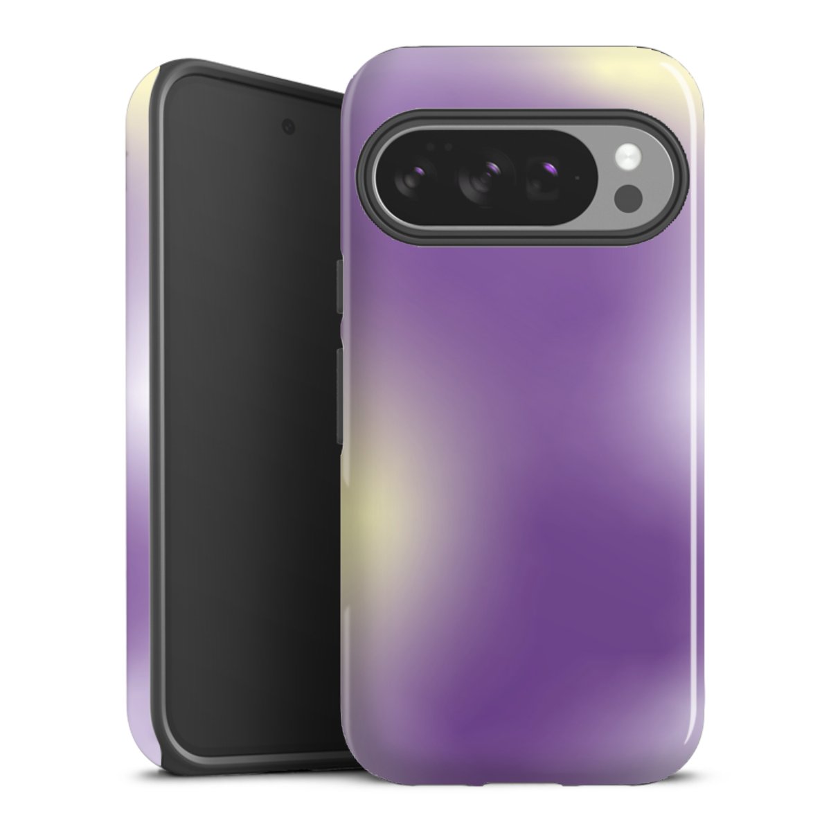 Bei dieser Handyhülle nutzen wird den besonders langlebigen Sublimationsdruck. Dieses raffinierte Druckverfahren sticht durch sein hochwertiges, gestochen scharfes Druckbild in brillanten Farben hervor. Der Druckbereich umfasst die ganze Hartschale inklusive der Ecken und Kanten, lediglich der Silikon-Einleger bleibt einfarbig schwarz. Wähle für Dein Design entweder eines unserer exklusiven Shop-Motive, oder werde kreativ und gestalte Dein Wunschdesign zum Beispiel mit Fotos und Overlays selbst.