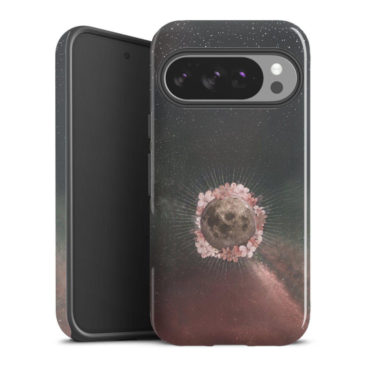 Bei dieser Handyhülle nutzen wird den besonders langlebigen Sublimationsdruck. Dieses raffinierte Druckverfahren sticht durch sein hochwertiges, gestochen scharfes Druckbild in brillanten Farben hervor. Der Druckbereich umfasst die ganze Hartschale inklusive der Ecken und Kanten, lediglich der Silikon-Einleger bleibt einfarbig schwarz. Wähle für Dein Design entweder eines unserer exklusiven Shop-Motive, oder werde kreativ und gestalte Dein Wunschdesign zum Beispiel mit Fotos und Overlays selbst.