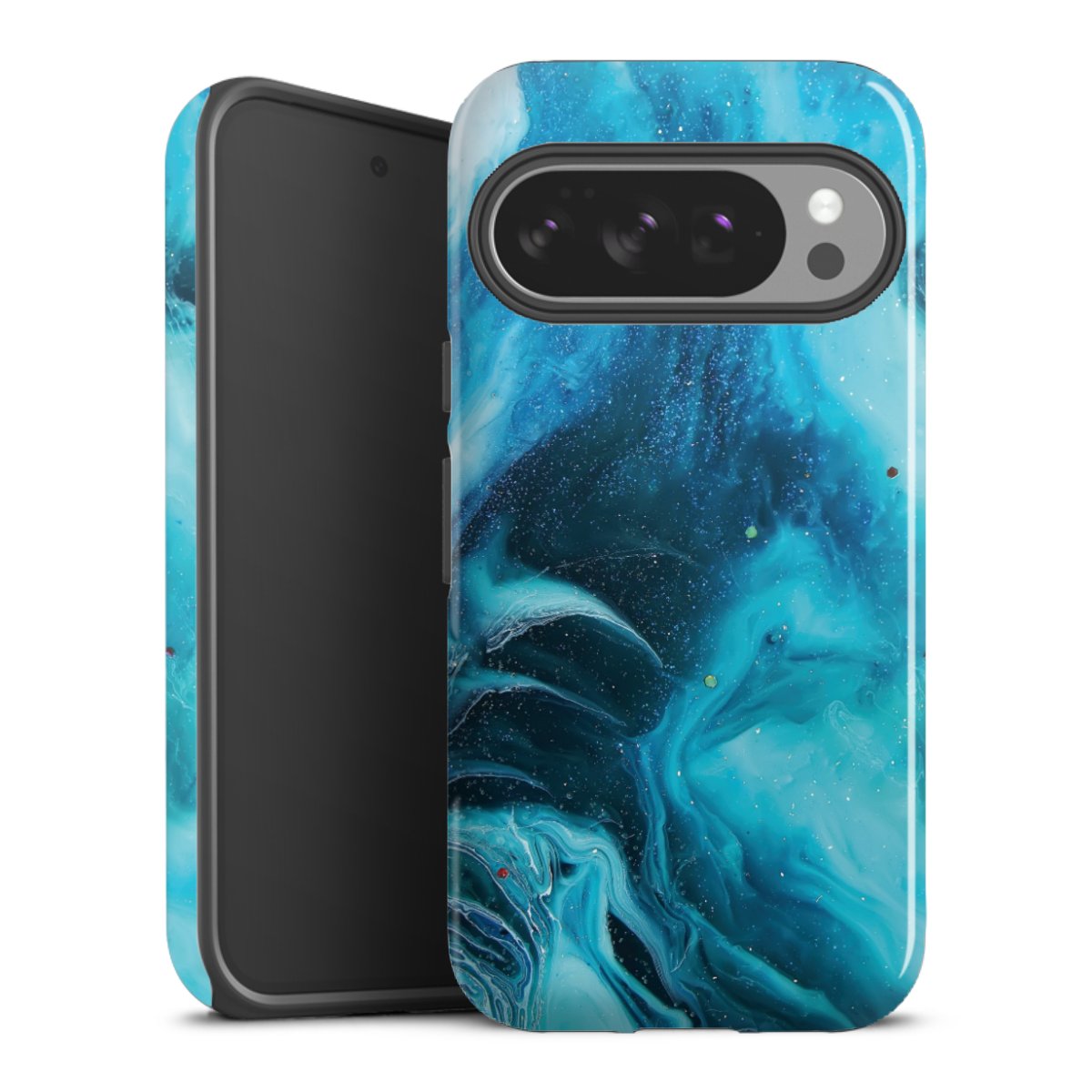 Bei dieser Handyhülle nutzen wird den besonders langlebigen Sublimationsdruck. Dieses raffinierte Druckverfahren sticht durch sein hochwertiges, gestochen scharfes Druckbild in brillanten Farben hervor. Der Druckbereich umfasst die ganze Hartschale inklusive der Ecken und Kanten, lediglich der Silikon-Einleger bleibt einfarbig schwarz. Wähle für Dein Design entweder eines unserer exklusiven Shop-Motive, oder werde kreativ und gestalte Dein Wunschdesign zum Beispiel mit Fotos und Overlays selbst.