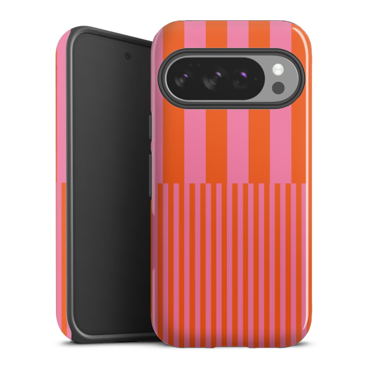 Bei dieser Handyhülle nutzen wird den besonders langlebigen Sublimationsdruck. Dieses raffinierte Druckverfahren sticht durch sein hochwertiges, gestochen scharfes Druckbild in brillanten Farben hervor. Der Druckbereich umfasst die ganze Hartschale inklusive der Ecken und Kanten, lediglich der Silikon-Einleger bleibt einfarbig schwarz. Wähle für Dein Design entweder eines unserer exklusiven Shop-Motive, oder werde kreativ und gestalte Dein Wunschdesign zum Beispiel mit Fotos und Overlays selbst.
