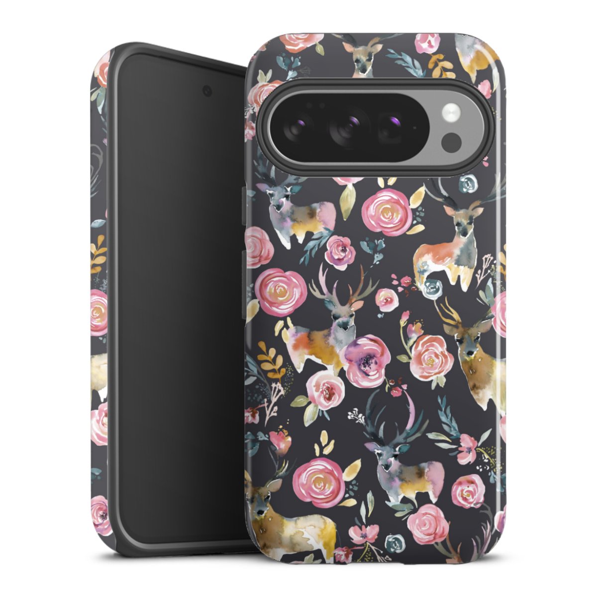 Hirsche und Blumen Anthrazit