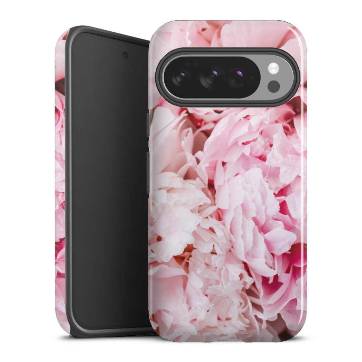 Bei dieser Handyhülle nutzen wird den besonders langlebigen Sublimationsdruck. Dieses raffinierte Druckverfahren sticht durch sein hochwertiges, gestochen scharfes Druckbild in brillanten Farben hervor. Der Druckbereich umfasst die ganze Hartschale inklusive der Ecken und Kanten, lediglich der Silikon-Einleger bleibt einfarbig schwarz. Wähle für Dein Design entweder eines unserer exklusiven Shop-Motive, oder werde kreativ und gestalte Dein Wunschdesign zum Beispiel mit Fotos und Overlays selbst.