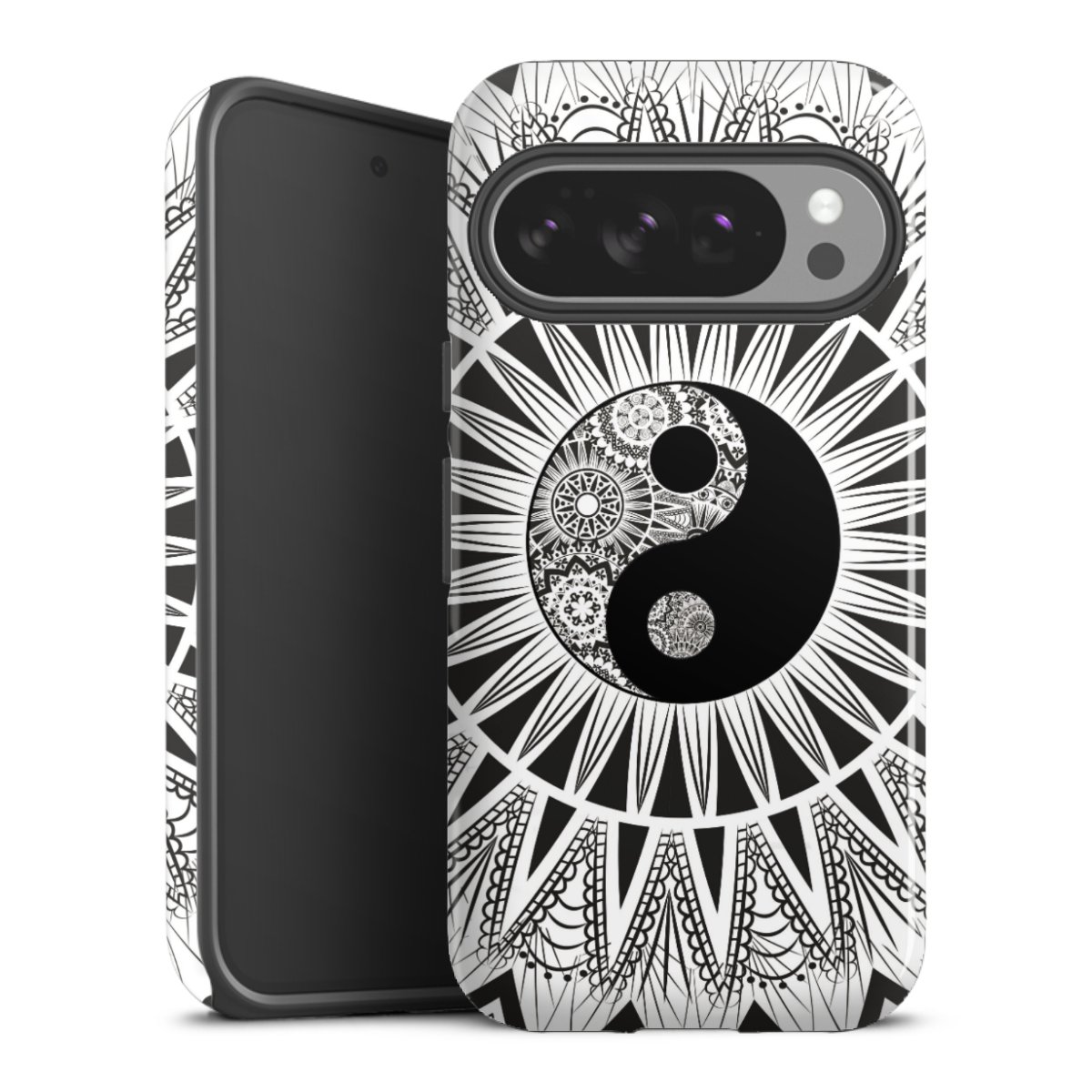 Bei dieser Handyhülle nutzen wird den besonders langlebigen Sublimationsdruck. Dieses raffinierte Druckverfahren sticht durch sein hochwertiges, gestochen scharfes Druckbild in brillanten Farben hervor. Der Druckbereich umfasst die ganze Hartschale inklusive der Ecken und Kanten, lediglich der Silikon-Einleger bleibt einfarbig schwarz. Wähle für Dein Design entweder eines unserer exklusiven Shop-Motive, oder werde kreativ und gestalte Dein Wunschdesign zum Beispiel mit Fotos und Overlays selbst.
