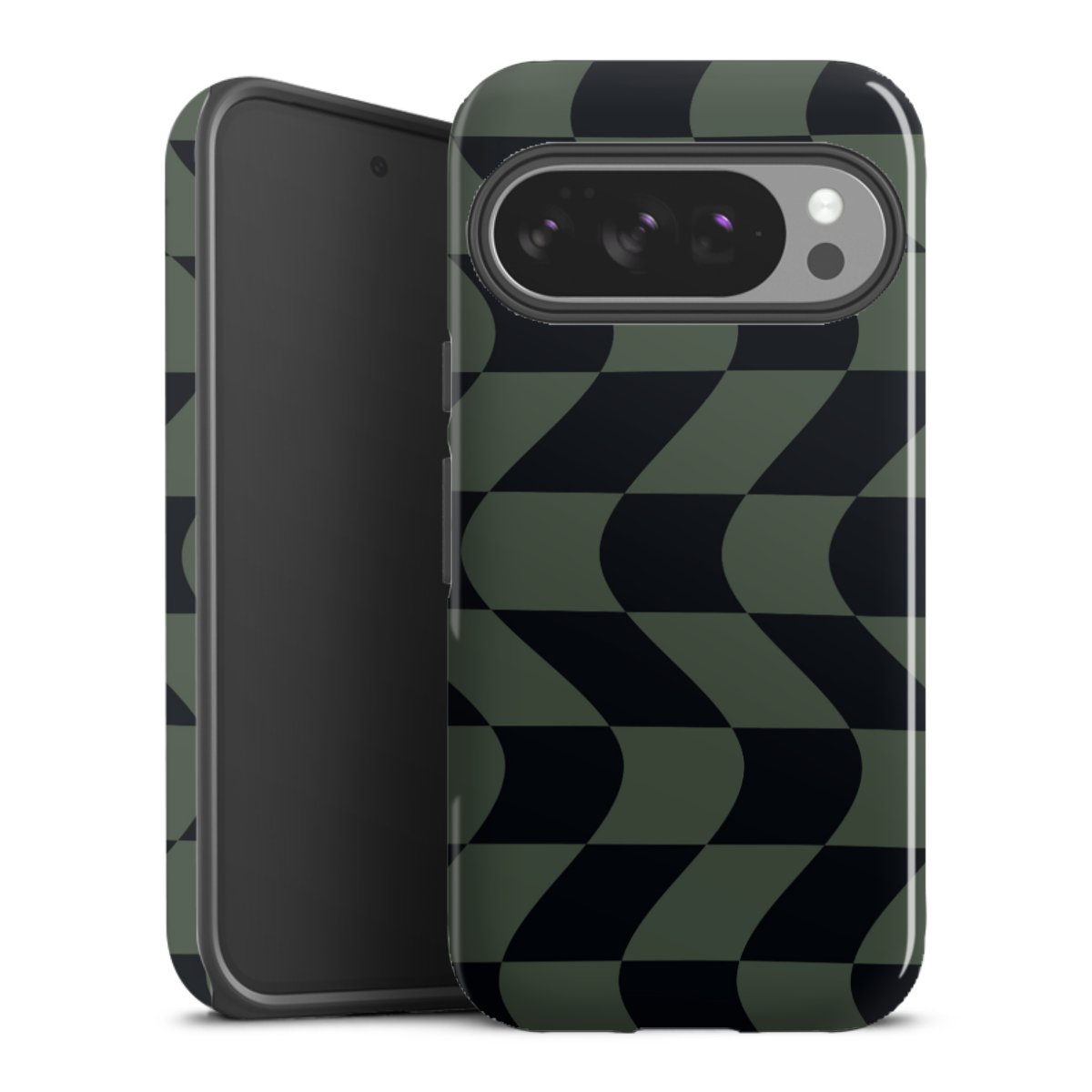 Bei dieser Handyhülle nutzen wird den besonders langlebigen Sublimationsdruck. Dieses raffinierte Druckverfahren sticht durch sein hochwertiges, gestochen scharfes Druckbild in brillanten Farben hervor. Der Druckbereich umfasst die ganze Hartschale inklusive der Ecken und Kanten, lediglich der Silikon-Einleger bleibt einfarbig schwarz. Wähle für Dein Design entweder eines unserer exklusiven Shop-Motive, oder werde kreativ und gestalte Dein Wunschdesign zum Beispiel mit Fotos und Overlays selbst.