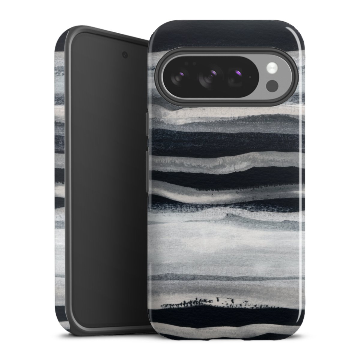 Bei dieser Handyhülle nutzen wird den besonders langlebigen Sublimationsdruck. Dieses raffinierte Druckverfahren sticht durch sein hochwertiges, gestochen scharfes Druckbild in brillanten Farben hervor. Der Druckbereich umfasst die ganze Hartschale inklusive der Ecken und Kanten, lediglich der Silikon-Einleger bleibt einfarbig schwarz. Wähle für Dein Design entweder eines unserer exklusiven Shop-Motive, oder werde kreativ und gestalte Dein Wunschdesign zum Beispiel mit Fotos und Overlays selbst.