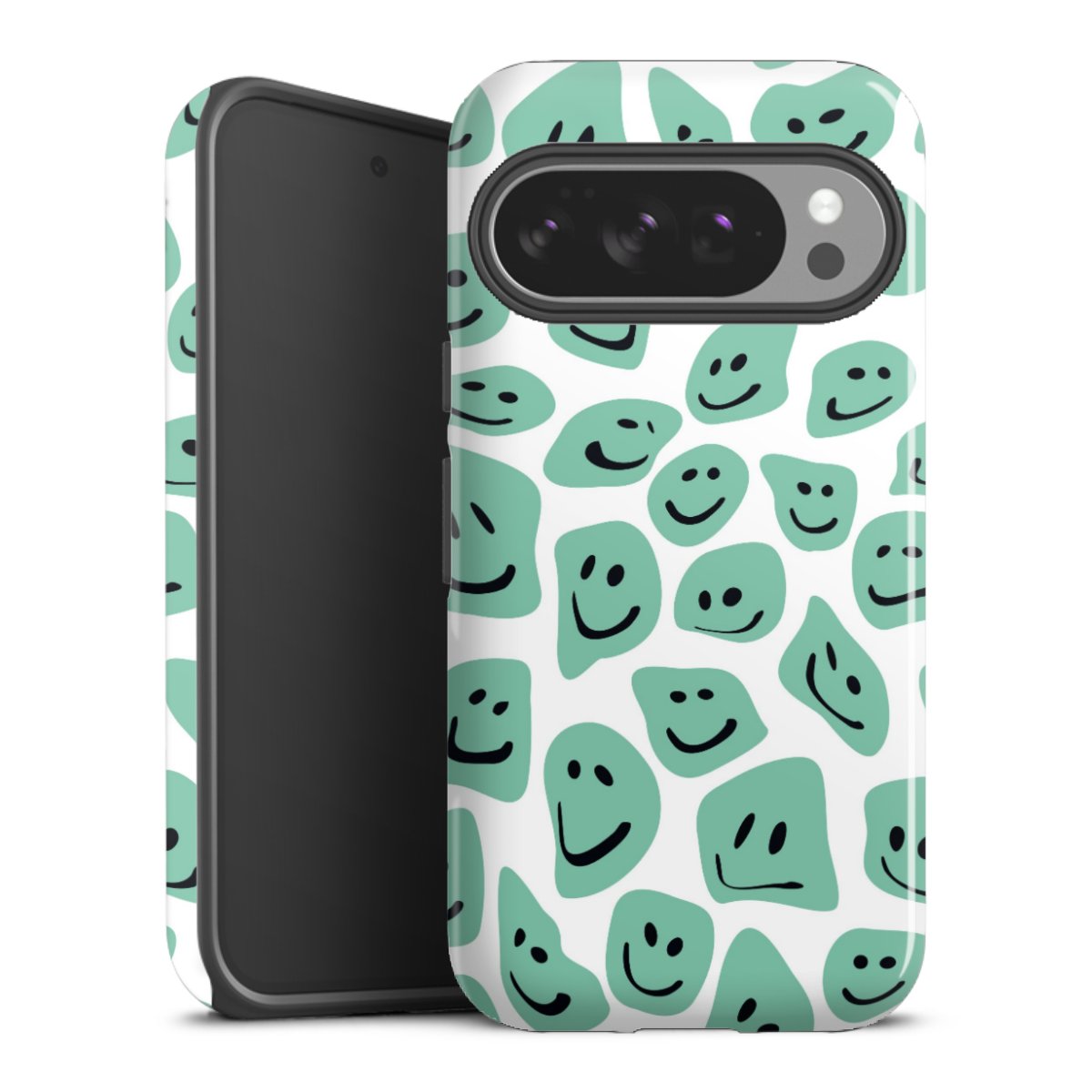 Bei dieser Handyhülle nutzen wird den besonders langlebigen Sublimationsdruck. Dieses raffinierte Druckverfahren sticht durch sein hochwertiges, gestochen scharfes Druckbild in brillanten Farben hervor. Der Druckbereich umfasst die ganze Hartschale inklusive der Ecken und Kanten, lediglich der Silikon-Einleger bleibt einfarbig schwarz. Wähle für Dein Design entweder eines unserer exklusiven Shop-Motive, oder werde kreativ und gestalte Dein Wunschdesign zum Beispiel mit Fotos und Overlays selbst.