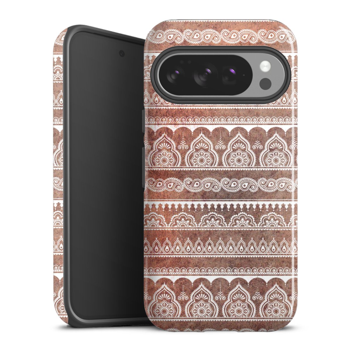 Bei dieser Handyhülle nutzen wird den besonders langlebigen Sublimationsdruck. Dieses raffinierte Druckverfahren sticht durch sein hochwertiges, gestochen scharfes Druckbild in brillanten Farben hervor. Der Druckbereich umfasst die ganze Hartschale inklusive der Ecken und Kanten, lediglich der Silikon-Einleger bleibt einfarbig schwarz. Wähle für Dein Design entweder eines unserer exklusiven Shop-Motive, oder werde kreativ und gestalte Dein Wunschdesign zum Beispiel mit Fotos und Overlays selbst.