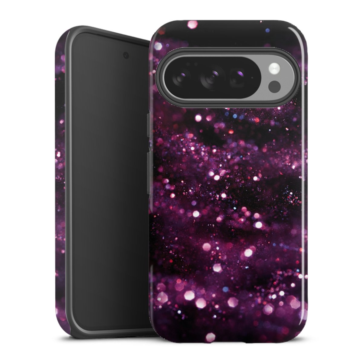 Bei dieser Handyhülle nutzen wird den besonders langlebigen Sublimationsdruck. Dieses raffinierte Druckverfahren sticht durch sein hochwertiges, gestochen scharfes Druckbild in brillanten Farben hervor. Der Druckbereich umfasst die ganze Hartschale inklusive der Ecken und Kanten, lediglich der Silikon-Einleger bleibt einfarbig schwarz. Wähle für Dein Design entweder eines unserer exklusiven Shop-Motive, oder werde kreativ und gestalte Dein Wunschdesign zum Beispiel mit Fotos und Overlays selbst.