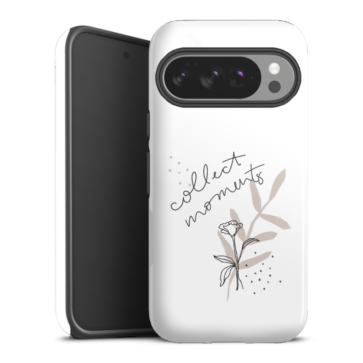 Bei dieser Handyhülle nutzen wird den besonders langlebigen Sublimationsdruck. Dieses raffinierte Druckverfahren sticht durch sein hochwertiges, gestochen scharfes Druckbild in brillanten Farben hervor. Der Druckbereich umfasst die ganze Hartschale inklusive der Ecken und Kanten, lediglich der Silikon-Einleger bleibt einfarbig schwarz. Wähle für Dein Design entweder eines unserer exklusiven Shop-Motive, oder werde kreativ und gestalte Dein Wunschdesign zum Beispiel mit Fotos und Overlays selbst.