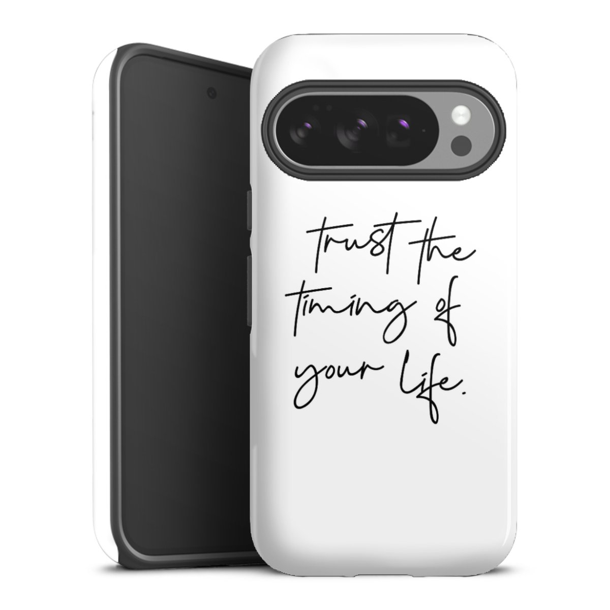Bei dieser Handyhülle nutzen wird den besonders langlebigen Sublimationsdruck. Dieses raffinierte Druckverfahren sticht durch sein hochwertiges, gestochen scharfes Druckbild in brillanten Farben hervor. Der Druckbereich umfasst die ganze Hartschale inklusive der Ecken und Kanten, lediglich der Silikon-Einleger bleibt einfarbig schwarz. Wähle für Dein Design entweder eines unserer exklusiven Shop-Motive, oder werde kreativ und gestalte Dein Wunschdesign zum Beispiel mit Fotos und Overlays selbst.
