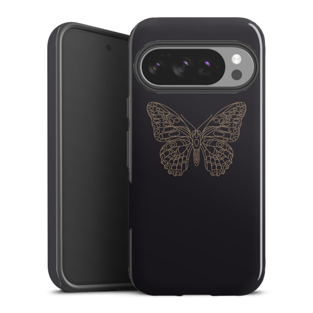 Bei dieser Handyhülle nutzen wird den besonders langlebigen Sublimationsdruck. Dieses raffinierte Druckverfahren sticht durch sein hochwertiges, gestochen scharfes Druckbild in brillanten Farben hervor. Der Druckbereich umfasst die ganze Hartschale inklusive der Ecken und Kanten, lediglich der Silikon-Einleger bleibt einfarbig schwarz. Wähle für Dein Design entweder eines unserer exklusiven Shop-Motive, oder werde kreativ und gestalte Dein Wunschdesign zum Beispiel mit Fotos und Overlays selbst.
