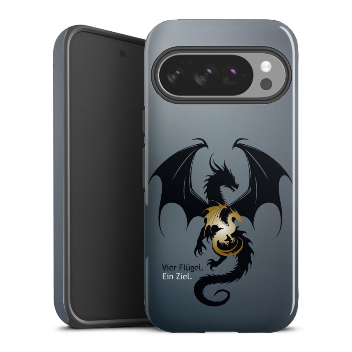 Bei dieser Handyhülle nutzen wird den besonders langlebigen Sublimationsdruck. Dieses raffinierte Druckverfahren sticht durch sein hochwertiges, gestochen scharfes Druckbild in brillanten Farben hervor. Der Druckbereich umfasst die ganze Hartschale inklusive der Ecken und Kanten, lediglich der Silikon-Einleger bleibt einfarbig schwarz. Wähle für Dein Design entweder eines unserer exklusiven Shop-Motive, oder werde kreativ und gestalte Dein Wunschdesign zum Beispiel mit Fotos und Overlays selbst.