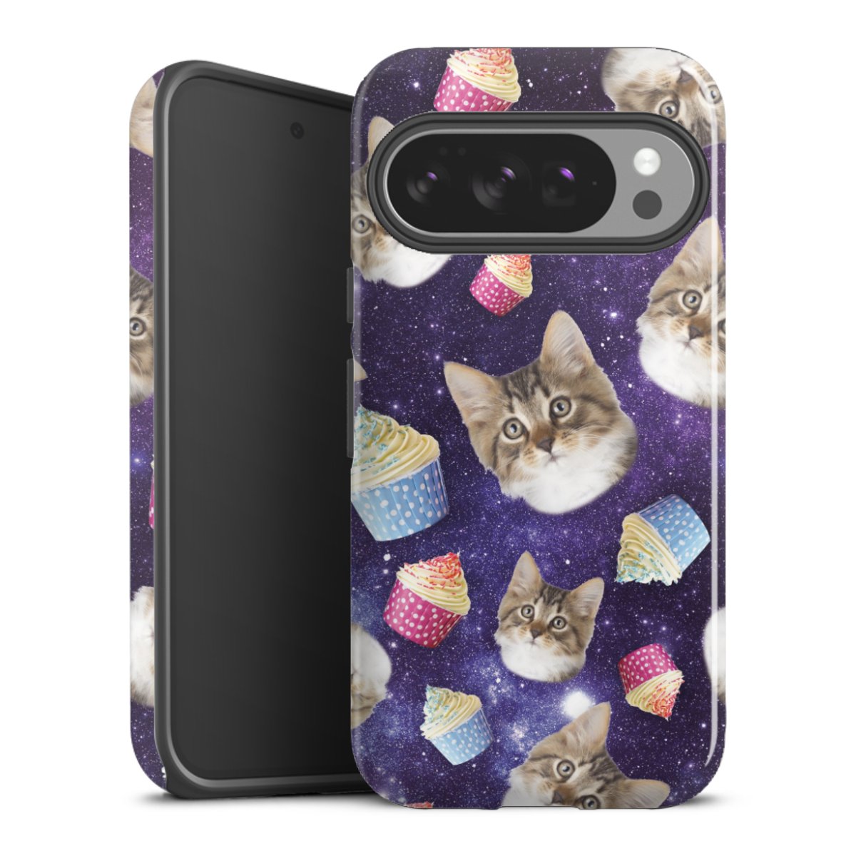 Bei dieser Handyhülle nutzen wird den besonders langlebigen Sublimationsdruck. Dieses raffinierte Druckverfahren sticht durch sein hochwertiges, gestochen scharfes Druckbild in brillanten Farben hervor. Der Druckbereich umfasst die ganze Hartschale inklusive der Ecken und Kanten, lediglich der Silikon-Einleger bleibt einfarbig schwarz. Wähle für Dein Design entweder eines unserer exklusiven Shop-Motive, oder werde kreativ und gestalte Dein Wunschdesign zum Beispiel mit Fotos und Overlays selbst.