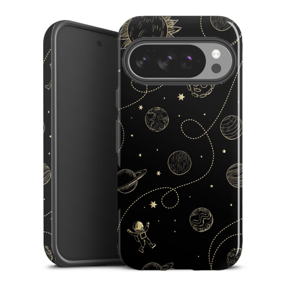 Bei dieser Handyhülle nutzen wird den besonders langlebigen Sublimationsdruck. Dieses raffinierte Druckverfahren sticht durch sein hochwertiges, gestochen scharfes Druckbild in brillanten Farben hervor. Der Druckbereich umfasst die ganze Hartschale inklusive der Ecken und Kanten, lediglich der Silikon-Einleger bleibt einfarbig schwarz. Wähle für Dein Design entweder eines unserer exklusiven Shop-Motive, oder werde kreativ und gestalte Dein Wunschdesign zum Beispiel mit Fotos und Overlays selbst.
