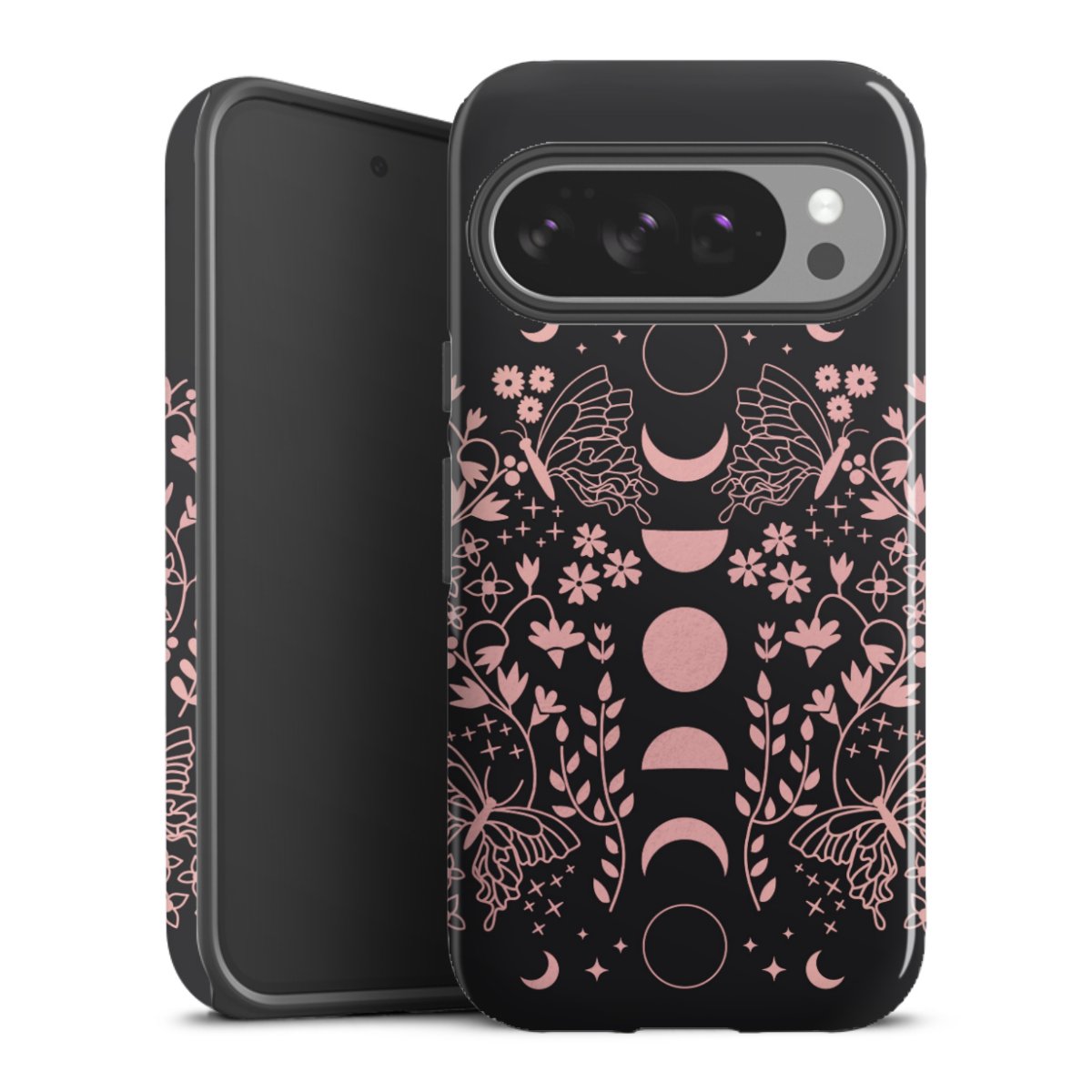 Bei dieser Handyhülle nutzen wird den besonders langlebigen Sublimationsdruck. Dieses raffinierte Druckverfahren sticht durch sein hochwertiges, gestochen scharfes Druckbild in brillanten Farben hervor. Der Druckbereich umfasst die ganze Hartschale inklusive der Ecken und Kanten, lediglich der Silikon-Einleger bleibt einfarbig schwarz. Wähle für Dein Design entweder eines unserer exklusiven Shop-Motive, oder werde kreativ und gestalte Dein Wunschdesign zum Beispiel mit Fotos und Overlays selbst.