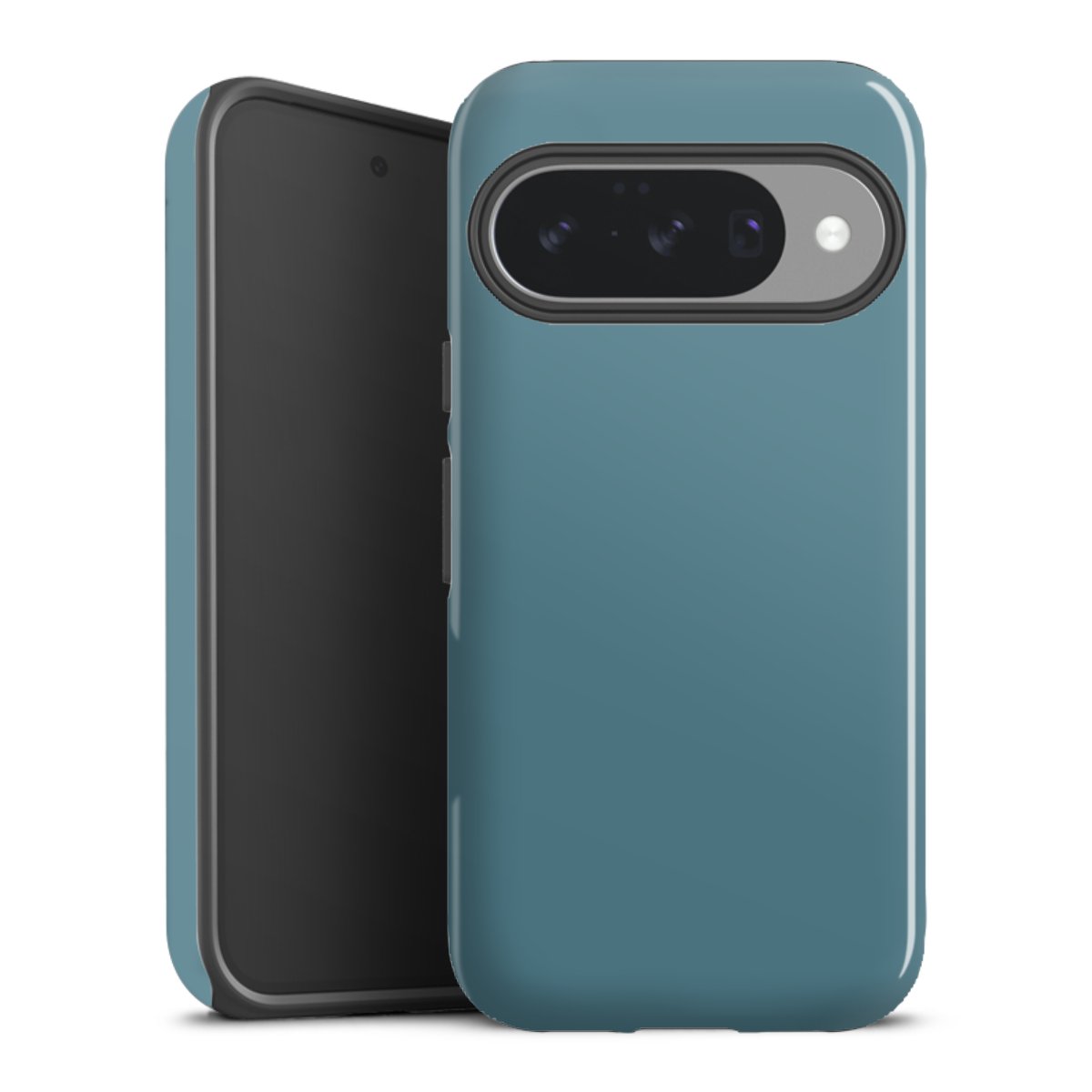 Unsere sicherste Schutzhülle vereint die Vorteile der Silikonhülle mit den Vorzügen des Premium Cases und besteht aus zwei Teilen: Innen federt der flexible Silikonkern aus robustem TPU (thermoplastisches Polyurethan) zuverlässig Stöße und Stürze ab, außen sorgt die widerstandsfähige und langlebige Hartschale aus Polycarbonat für zusätzliche Stabilität. Die Oberfläche der insgesamt 2,6 mm starken Hülle fühlt sich angenehm glatt an und macht das Tough Case zu einem echten Handschmeichler. Die Handyhülle ist in glänzend und matt erhältlich, der Silikoneinleger ist Schwarz.