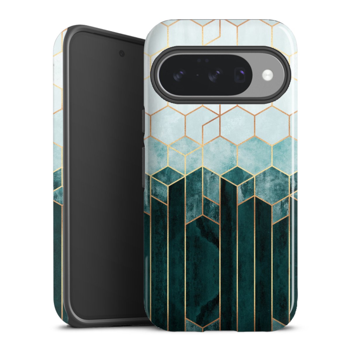 Blaugrüne Sechsecke