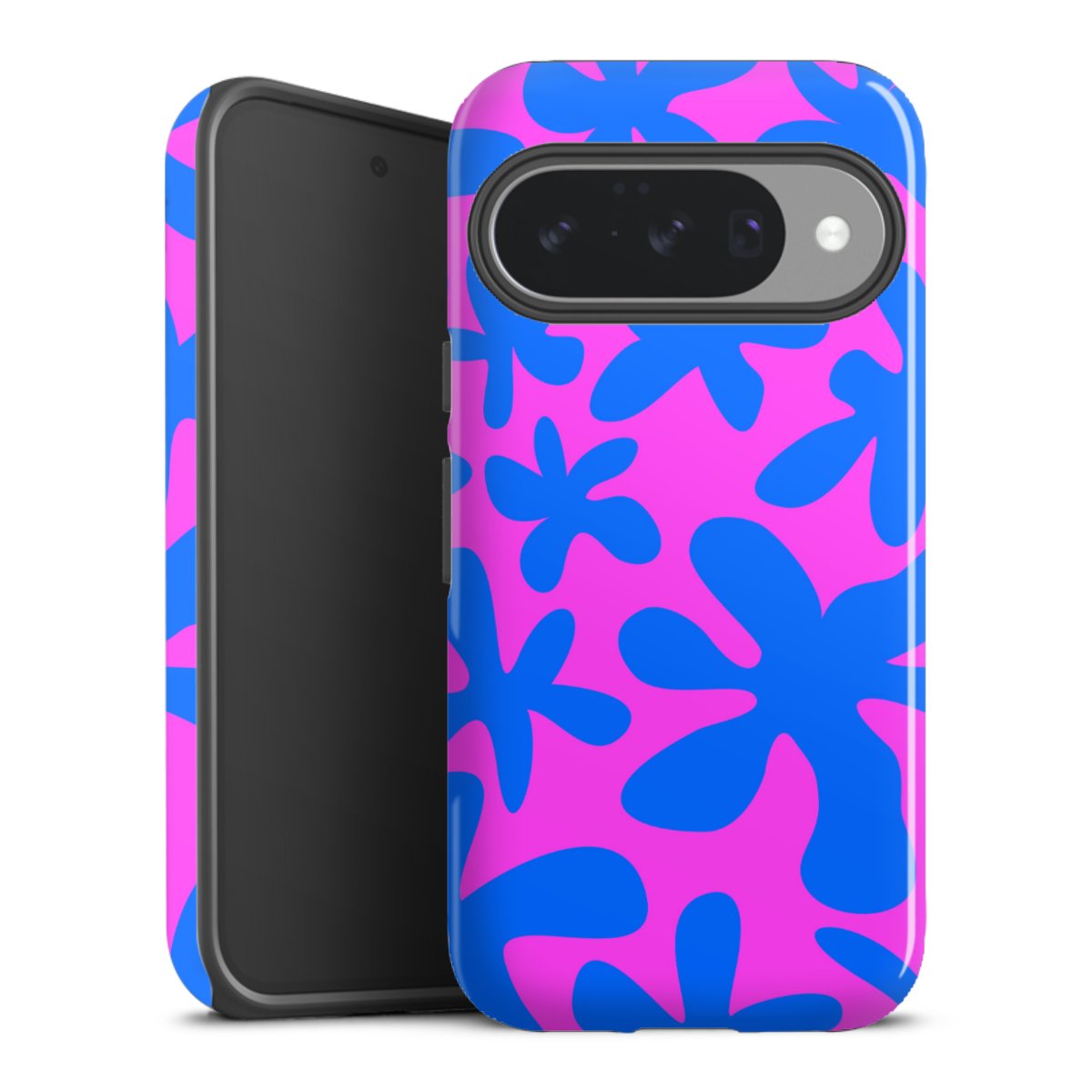 Bei dieser Handyhülle nutzen wird den besonders langlebigen Sublimationsdruck. Dieses raffinierte Druckverfahren sticht durch sein hochwertiges, gestochen scharfes Druckbild in brillanten Farben hervor. Der Druckbereich umfasst die ganze Hartschale inklusive der Ecken und Kanten, lediglich der Silikon-Einleger bleibt einfarbig schwarz. Wähle für Dein Design entweder eines unserer exklusiven Shop-Motive, oder werde kreativ und gestalte Dein Wunschdesign zum Beispiel mit Fotos und Overlays selbst.