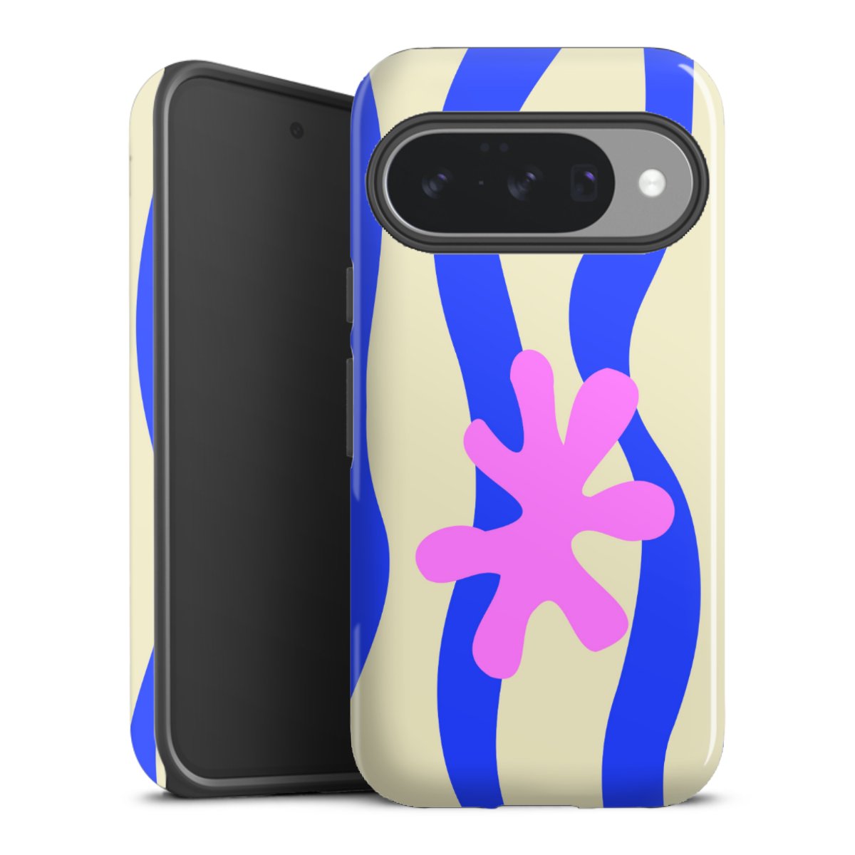 Bei dieser Handyhülle nutzen wird den besonders langlebigen Sublimationsdruck. Dieses raffinierte Druckverfahren sticht durch sein hochwertiges, gestochen scharfes Druckbild in brillanten Farben hervor. Der Druckbereich umfasst die ganze Hartschale inklusive der Ecken und Kanten, lediglich der Silikon-Einleger bleibt einfarbig schwarz. Wähle für Dein Design entweder eines unserer exklusiven Shop-Motive, oder werde kreativ und gestalte Dein Wunschdesign zum Beispiel mit Fotos und Overlays selbst.