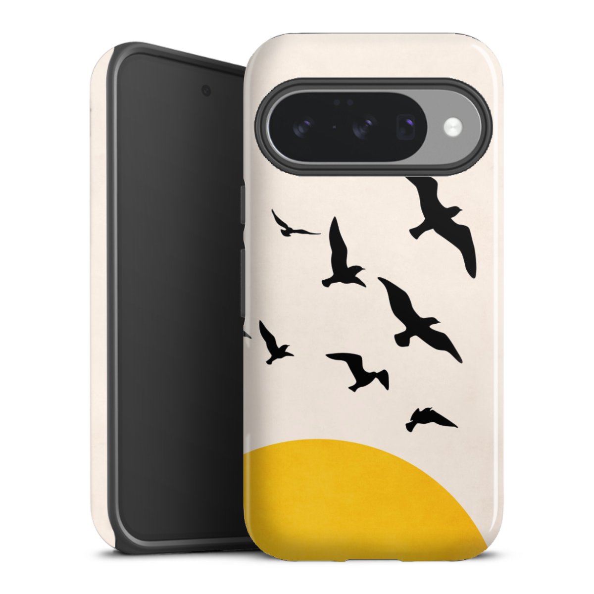 Bei dieser Handyhülle nutzen wird den besonders langlebigen Sublimationsdruck. Dieses raffinierte Druckverfahren sticht durch sein hochwertiges, gestochen scharfes Druckbild in brillanten Farben hervor. Der Druckbereich umfasst die ganze Hartschale inklusive der Ecken und Kanten, lediglich der Silikon-Einleger bleibt einfarbig schwarz. Wähle für Dein Design entweder eines unserer exklusiven Shop-Motive, oder werde kreativ und gestalte Dein Wunschdesign zum Beispiel mit Fotos und Overlays selbst.