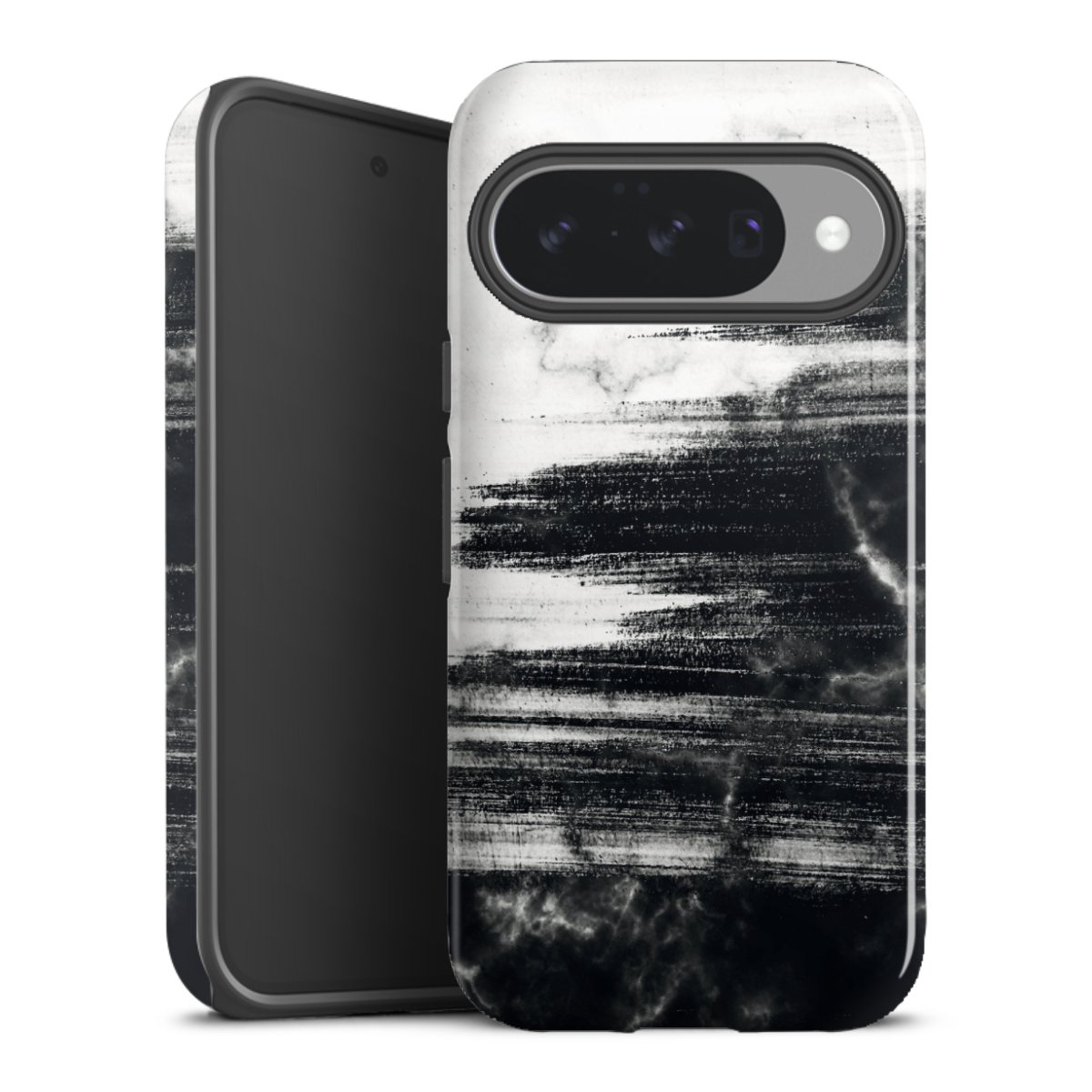 Unsere sicherste Schutzhülle vereint die Vorteile der Silikonhülle mit den Vorzügen des Premium Cases und besteht aus zwei Teilen: Innen federt der flexible Silikonkern aus robustem TPU (thermoplastisches Polyurethan) zuverlässig Stöße und Stürze ab, außen sorgt die widerstandsfähige und langlebige Hartschale aus Polycarbonat für zusätzliche Stabilität. Die Oberfläche der insgesamt 2,6 mm starken Hülle fühlt sich angenehm glatt an und macht das Tough Case zu einem echten Handschmeichler. Die Handyhülle ist in glänzend und matt erhältlich, der Silikoneinleger ist Schwarz.