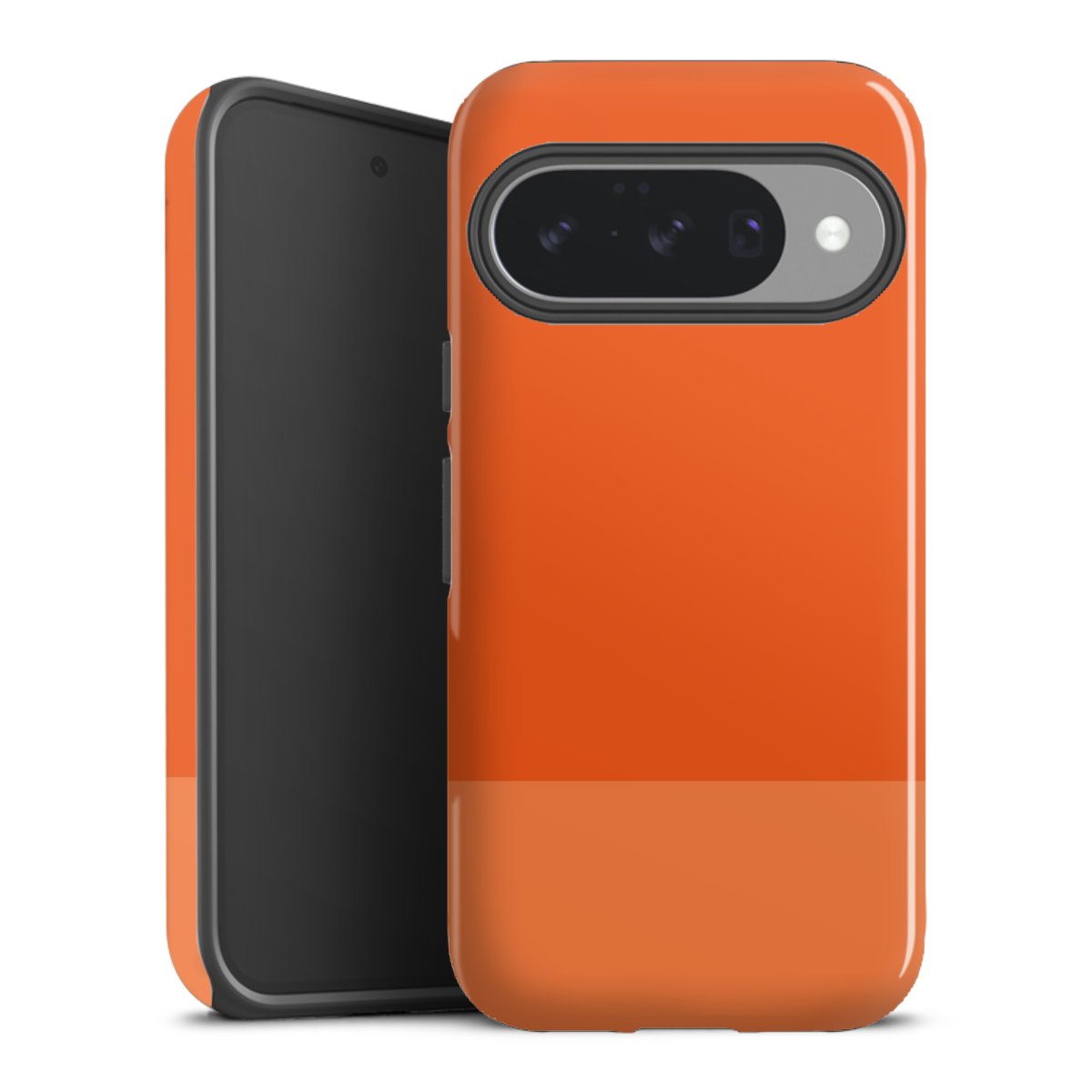 Unsere sicherste Schutzhülle vereint die Vorteile der Silikonhülle mit den Vorzügen des Premium Cases und besteht aus zwei Teilen: Innen federt der flexible Silikonkern aus robustem TPU (thermoplastisches Polyurethan) zuverlässig Stöße und Stürze ab, außen sorgt die widerstandsfähige und langlebige Hartschale aus Polycarbonat für zusätzliche Stabilität. Die Oberfläche der insgesamt 2,6 mm starken Hülle fühlt sich angenehm glatt an und macht das Tough Case zu einem echten Handschmeichler. Die Handyhülle ist in glänzend und matt erhältlich, der Silikoneinleger ist Schwarz.