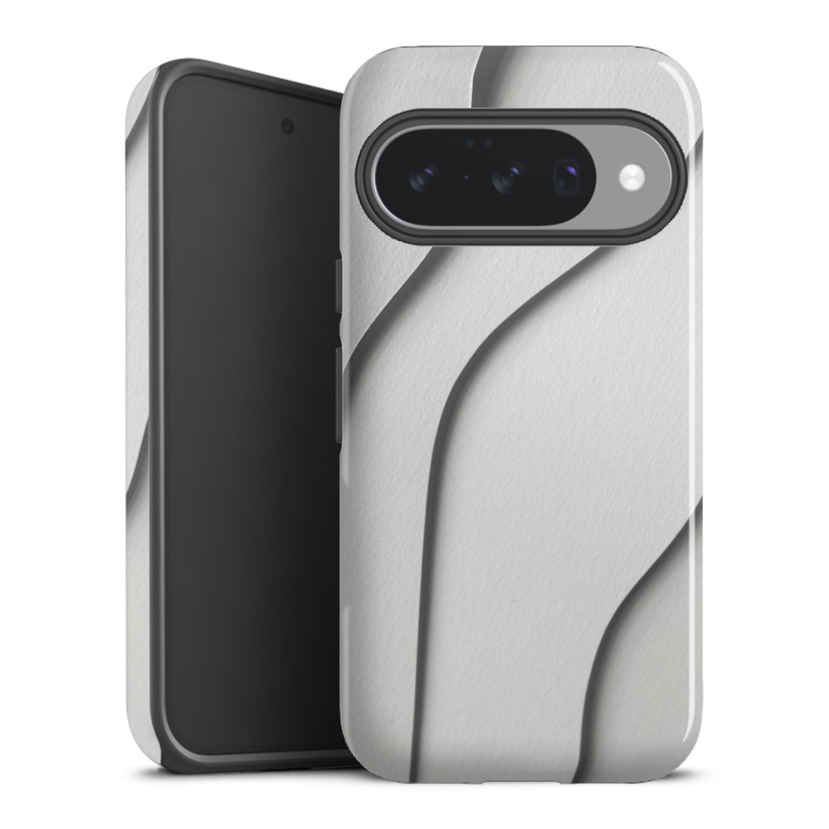 Unsere sicherste Schutzhülle vereint die Vorteile der Silikonhülle mit den Vorzügen des Premium Cases und besteht aus zwei Teilen: Innen federt der flexible Silikonkern aus robustem TPU (thermoplastisches Polyurethan) zuverlässig Stöße und Stürze ab, außen sorgt die widerstandsfähige und langlebige Hartschale aus Polycarbonat für zusätzliche Stabilität. Die Oberfläche der insgesamt 2,6 mm starken Hülle fühlt sich angenehm glatt an und macht das Tough Case zu einem echten Handschmeichler. Die Handyhülle ist in glänzend und matt erhältlich, der Silikoneinleger ist Schwarz.