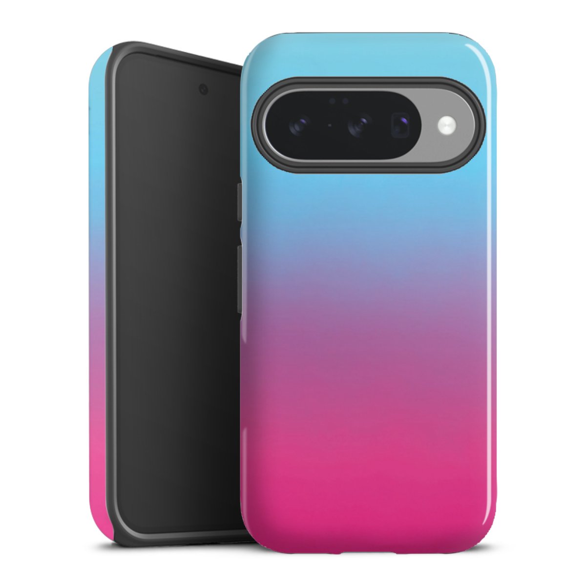 Unsere sicherste Schutzhülle vereint die Vorteile der Silikonhülle mit den Vorzügen des Premium Cases und besteht aus zwei Teilen: Innen federt der flexible Silikonkern aus robustem TPU (thermoplastisches Polyurethan) zuverlässig Stöße und Stürze ab, außen sorgt die widerstandsfähige und langlebige Hartschale aus Polycarbonat für zusätzliche Stabilität. Die Oberfläche der insgesamt 2,6 mm starken Hülle fühlt sich angenehm glatt an und macht das Tough Case zu einem echten Handschmeichler. Die Handyhülle ist in glänzend und matt erhältlich, der Silikoneinleger ist Schwarz.
