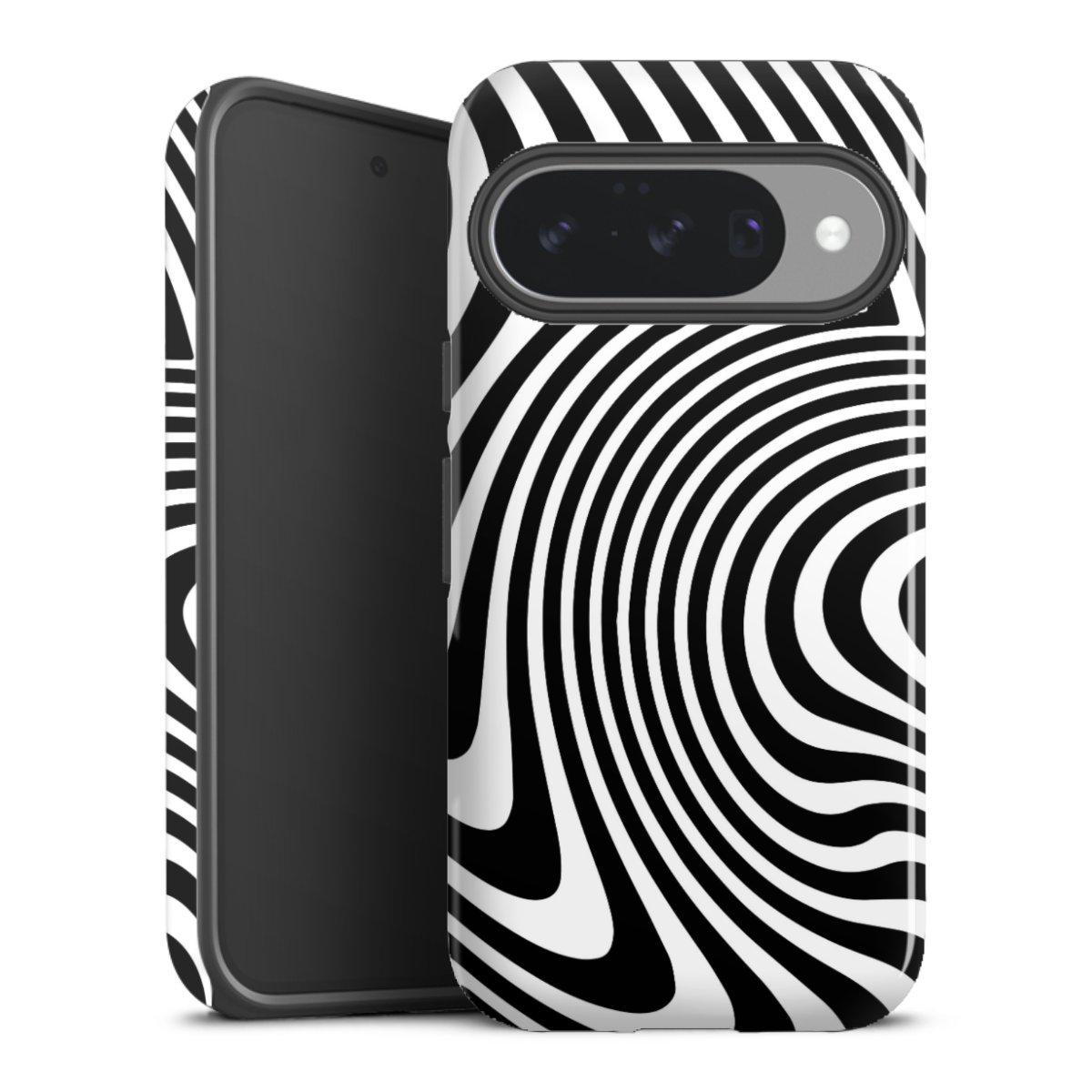 Bei dieser Handyhülle nutzen wird den besonders langlebigen Sublimationsdruck. Dieses raffinierte Druckverfahren sticht durch sein hochwertiges, gestochen scharfes Druckbild in brillanten Farben hervor. Der Druckbereich umfasst die ganze Hartschale inklusive der Ecken und Kanten, lediglich der Silikon-Einleger bleibt einfarbig schwarz. Wähle für Dein Design entweder eines unserer exklusiven Shop-Motive, oder werde kreativ und gestalte Dein Wunschdesign zum Beispiel mit Fotos und Overlays selbst.