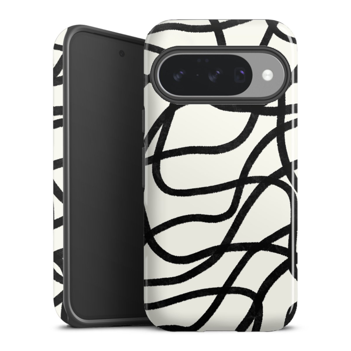 Unsere sicherste Schutzhülle vereint die Vorteile der Silikonhülle mit den Vorzügen des Premium Cases und besteht aus zwei Teilen: Innen federt der flexible Silikonkern aus robustem TPU (thermoplastisches Polyurethan) zuverlässig Stöße und Stürze ab, außen sorgt die widerstandsfähige und langlebige Hartschale aus Polycarbonat für zusätzliche Stabilität. Die Oberfläche der insgesamt 2,6 mm starken Hülle fühlt sich angenehm glatt an und macht das Tough Case zu einem echten Handschmeichler. Die Handyhülle ist in glänzend und matt erhältlich, der Silikoneinleger ist Schwarz.