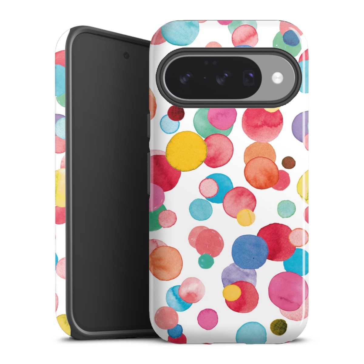 Bei dieser Handyhülle nutzen wird den besonders langlebigen Sublimationsdruck. Dieses raffinierte Druckverfahren sticht durch sein hochwertiges, gestochen scharfes Druckbild in brillanten Farben hervor. Der Druckbereich umfasst die ganze Hartschale inklusive der Ecken und Kanten, lediglich der Silikon-Einleger bleibt einfarbig schwarz. Wähle für Dein Design entweder eines unserer exklusiven Shop-Motive, oder werde kreativ und gestalte Dein Wunschdesign zum Beispiel mit Fotos und Overlays selbst.