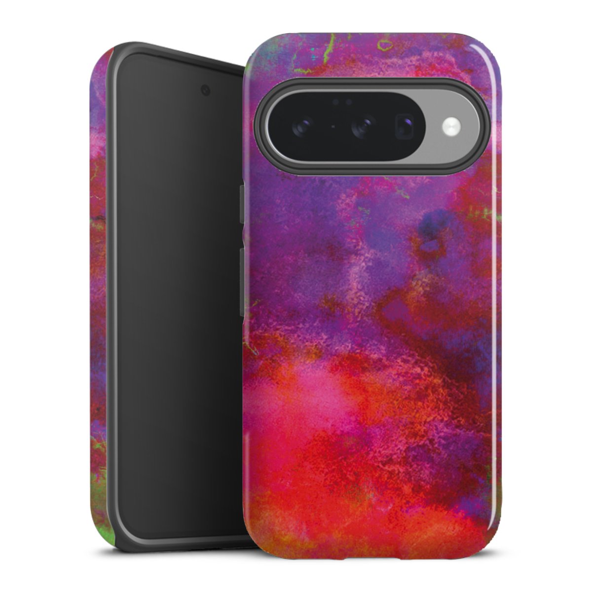Bei dieser Handyhülle nutzen wird den besonders langlebigen Sublimationsdruck. Dieses raffinierte Druckverfahren sticht durch sein hochwertiges, gestochen scharfes Druckbild in brillanten Farben hervor. Der Druckbereich umfasst die ganze Hartschale inklusive der Ecken und Kanten, lediglich der Silikon-Einleger bleibt einfarbig schwarz. Wähle für Dein Design entweder eines unserer exklusiven Shop-Motive, oder werde kreativ und gestalte Dein Wunschdesign zum Beispiel mit Fotos und Overlays selbst.