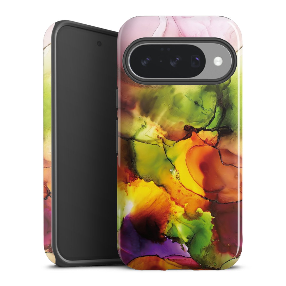 Bei dieser Handyhülle nutzen wird den besonders langlebigen Sublimationsdruck. Dieses raffinierte Druckverfahren sticht durch sein hochwertiges, gestochen scharfes Druckbild in brillanten Farben hervor. Der Druckbereich umfasst die ganze Hartschale inklusive der Ecken und Kanten, lediglich der Silikon-Einleger bleibt einfarbig schwarz. Wähle für Dein Design entweder eines unserer exklusiven Shop-Motive, oder werde kreativ und gestalte Dein Wunschdesign zum Beispiel mit Fotos und Overlays selbst.