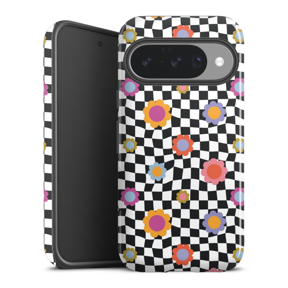 Bei dieser Handyhülle nutzen wird den besonders langlebigen Sublimationsdruck. Dieses raffinierte Druckverfahren sticht durch sein hochwertiges, gestochen scharfes Druckbild in brillanten Farben hervor. Der Druckbereich umfasst die ganze Hartschale inklusive der Ecken und Kanten, lediglich der Silikon-Einleger bleibt einfarbig schwarz. Wähle für Dein Design entweder eines unserer exklusiven Shop-Motive, oder werde kreativ und gestalte Dein Wunschdesign zum Beispiel mit Fotos und Overlays selbst.