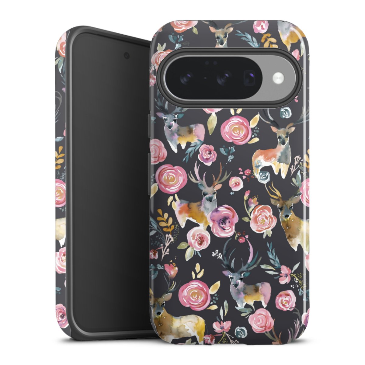 Hirsche und Blumen Anthrazit