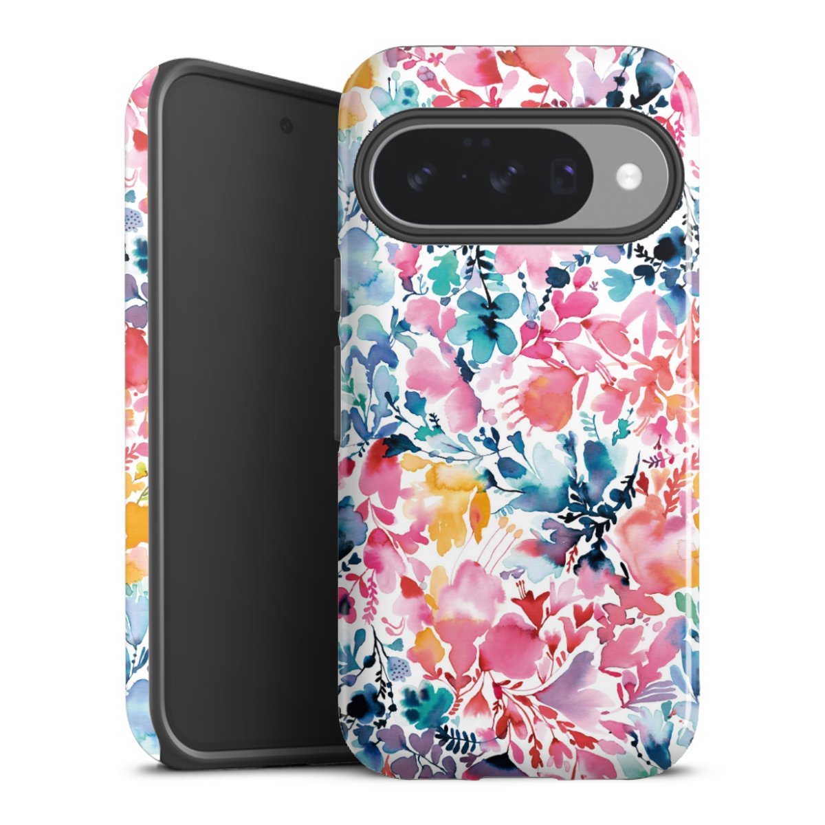 Bei dieser Handyhülle nutzen wird den besonders langlebigen Sublimationsdruck. Dieses raffinierte Druckverfahren sticht durch sein hochwertiges, gestochen scharfes Druckbild in brillanten Farben hervor. Der Druckbereich umfasst die ganze Hartschale inklusive der Ecken und Kanten, lediglich der Silikon-Einleger bleibt einfarbig schwarz. Wähle für Dein Design entweder eines unserer exklusiven Shop-Motive, oder werde kreativ und gestalte Dein Wunschdesign zum Beispiel mit Fotos und Overlays selbst.