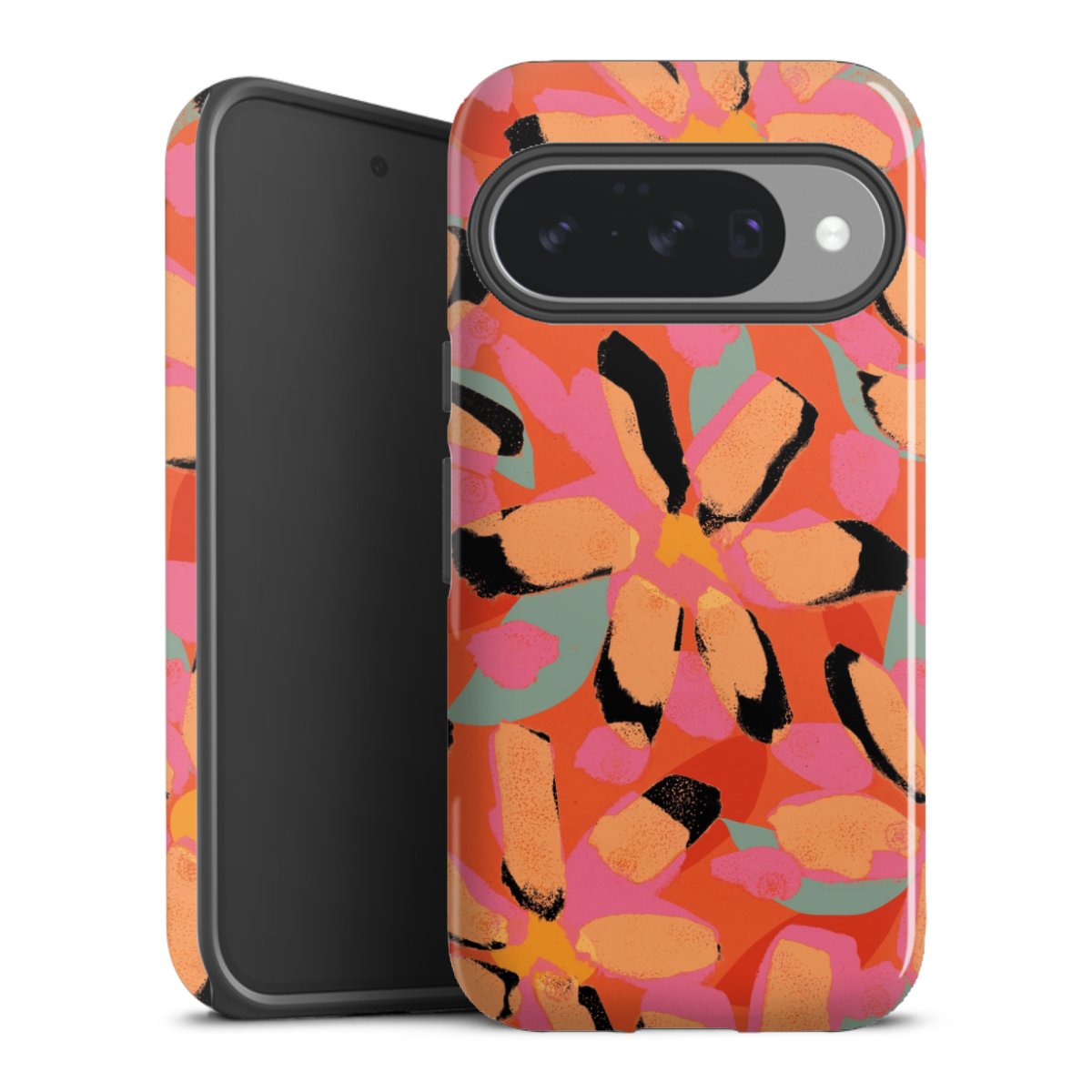 Bei dieser Handyhülle nutzen wird den besonders langlebigen Sublimationsdruck. Dieses raffinierte Druckverfahren sticht durch sein hochwertiges, gestochen scharfes Druckbild in brillanten Farben hervor. Der Druckbereich umfasst die ganze Hartschale inklusive der Ecken und Kanten, lediglich der Silikon-Einleger bleibt einfarbig schwarz. Wähle für Dein Design entweder eines unserer exklusiven Shop-Motive, oder werde kreativ und gestalte Dein Wunschdesign zum Beispiel mit Fotos und Overlays selbst.