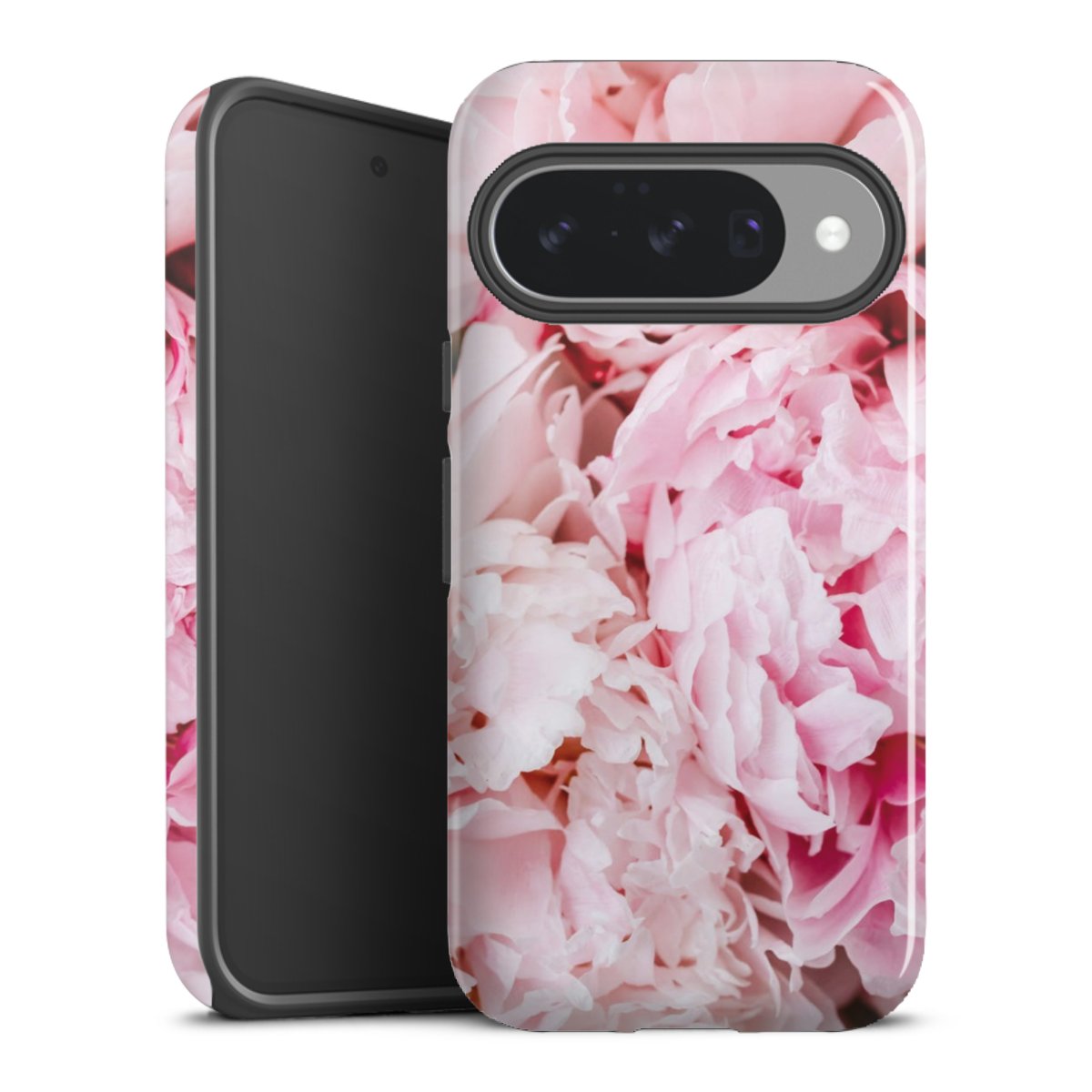 Bei dieser Handyhülle nutzen wird den besonders langlebigen Sublimationsdruck. Dieses raffinierte Druckverfahren sticht durch sein hochwertiges, gestochen scharfes Druckbild in brillanten Farben hervor. Der Druckbereich umfasst die ganze Hartschale inklusive der Ecken und Kanten, lediglich der Silikon-Einleger bleibt einfarbig schwarz. Wähle für Dein Design entweder eines unserer exklusiven Shop-Motive, oder werde kreativ und gestalte Dein Wunschdesign zum Beispiel mit Fotos und Overlays selbst.