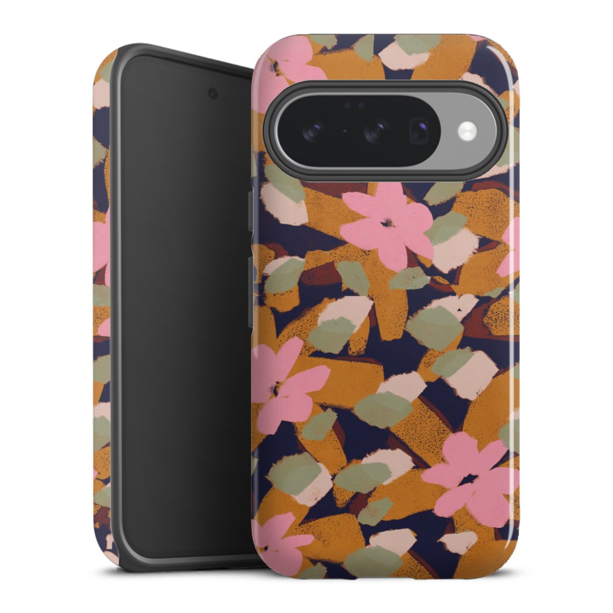 Bei dieser Handyhülle nutzen wird den besonders langlebigen Sublimationsdruck. Dieses raffinierte Druckverfahren sticht durch sein hochwertiges, gestochen scharfes Druckbild in brillanten Farben hervor. Der Druckbereich umfasst die ganze Hartschale inklusive der Ecken und Kanten, lediglich der Silikon-Einleger bleibt einfarbig schwarz. Wähle für Dein Design entweder eines unserer exklusiven Shop-Motive, oder werde kreativ und gestalte Dein Wunschdesign zum Beispiel mit Fotos und Overlays selbst.