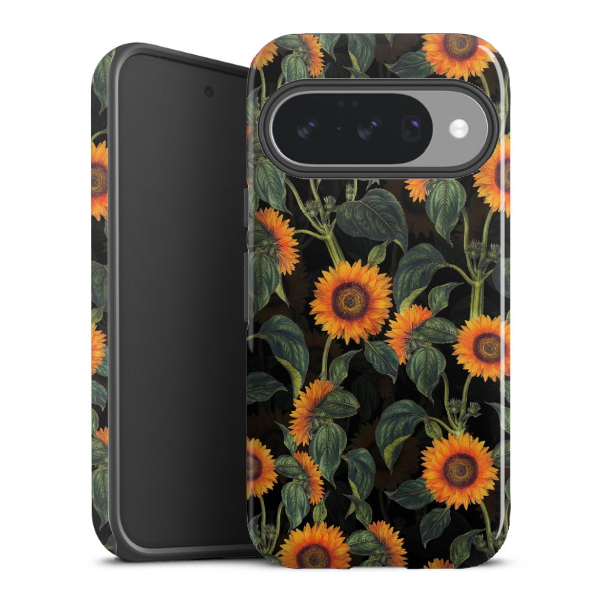 Bei dieser Handyhülle nutzen wird den besonders langlebigen Sublimationsdruck. Dieses raffinierte Druckverfahren sticht durch sein hochwertiges, gestochen scharfes Druckbild in brillanten Farben hervor. Der Druckbereich umfasst die ganze Hartschale inklusive der Ecken und Kanten, lediglich der Silikon-Einleger bleibt einfarbig schwarz. Wähle für Dein Design entweder eines unserer exklusiven Shop-Motive, oder werde kreativ und gestalte Dein Wunschdesign zum Beispiel mit Fotos und Overlays selbst.